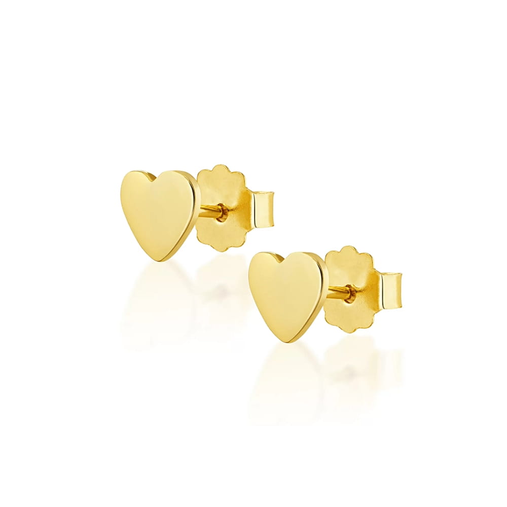 Złote kolczyki serduszka zapinane na sztyft/wkrętkę. Wykonane w całości z 14 karatowego złota próby 585. Doskonale sprawdzą się jako uzupełnienie codziennych stylizacji.