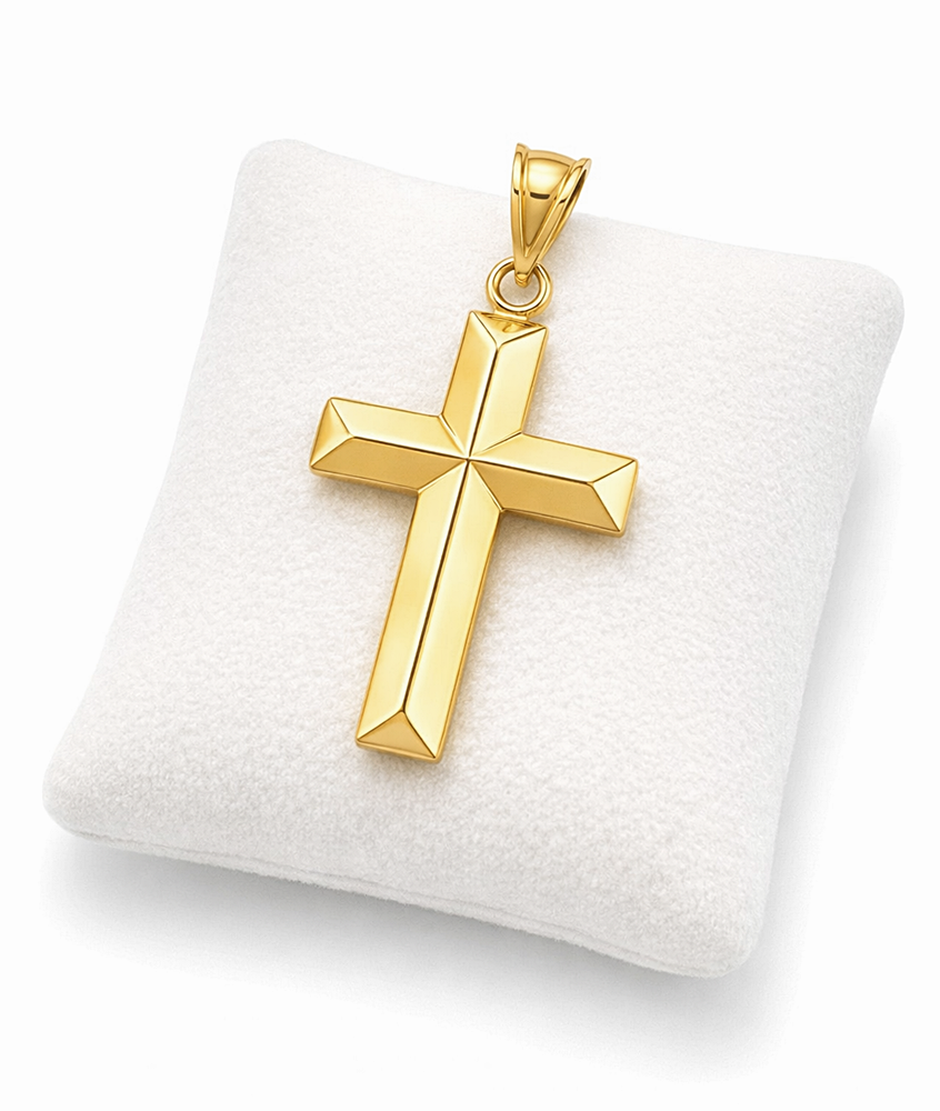 Subtelny, a zarazem wyrazisty złoty krzyżyk wykonany z wysokiej jakości złota próby 585 to doskonałe połączenie klasyki i nowoczesnego minimalizmu. Jego geometryczna forma z delikatnie fazowanymi krawędziami pięknie odbija światło, nadając biżuterii luksusowy, szlachetny charakter.