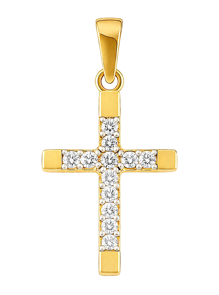 Elegancki krzyżyk wykonany z wysokiej jakości złota próby 585 to ponadczasowy symbol wiary i stylowy dodatek na każdą okazję. Jego klasyczna forma została wzbogacona subtelnym blaskiem starannie osadzonych cyrkonii, które pięknie odbijają światło i nadają całości wyjątkowej elegancji.