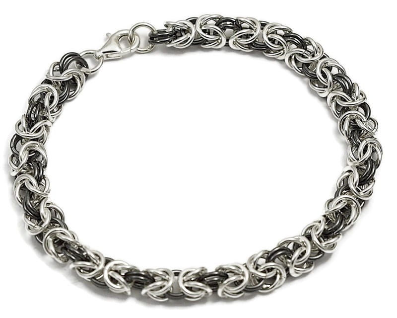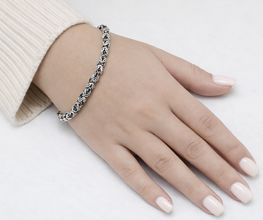 Elegancka srebrna bransoletka królewska (Byzantine) – oksydowana