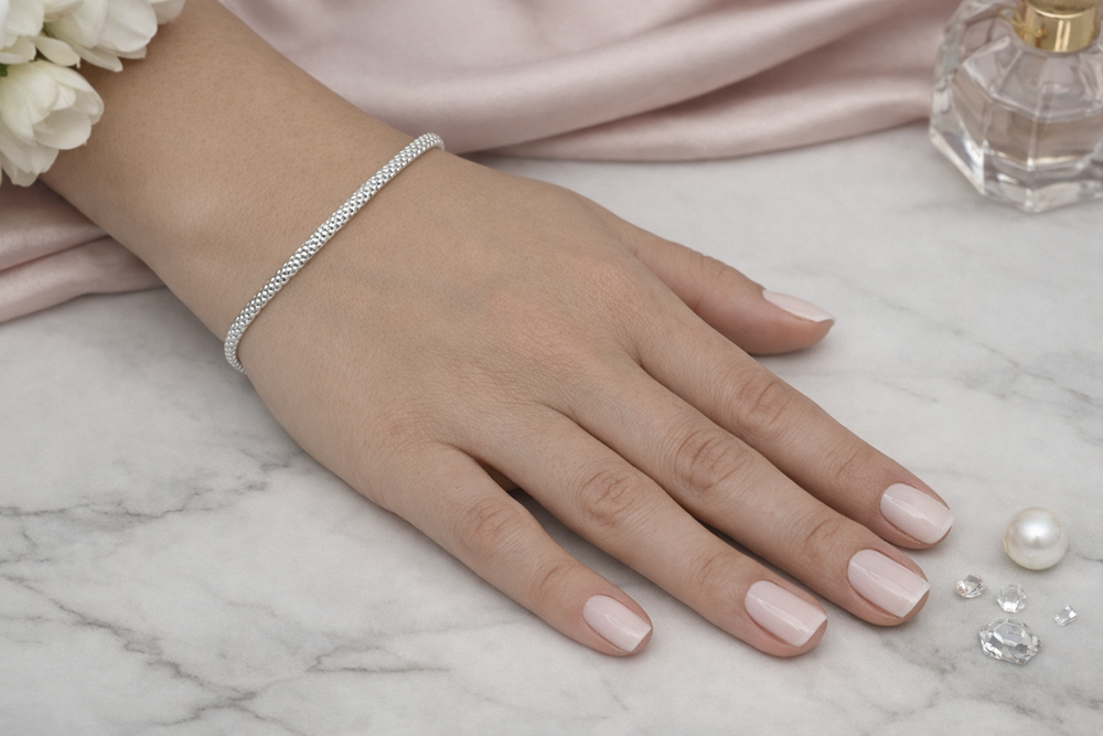 Bransoletka doskonale dopasowuje się do nadgarstka, jest wygodna w noszeniu i efektownie odbija światło, podkreślając Twój styl – zarówno w codziennych, jak i eleganckich stylizacjach. Dodatkowo została wyposażona w praktyczną przedłużkę, która umożliwia idealne dopasowanie długości do nadgarstka.