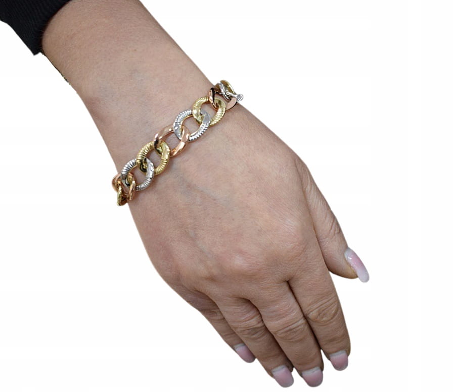Bransoletka jest nowa z metką, rodzaj złota: Żółte - Białe - Różowe, bezpośrednio od producenta. Zapakowana w gustowne Włoskie Pudełeczko Jubilerskie. Została precyzyjnie wykonana posiada solidne zapięcie. Wykonana ze złota pr. 585.