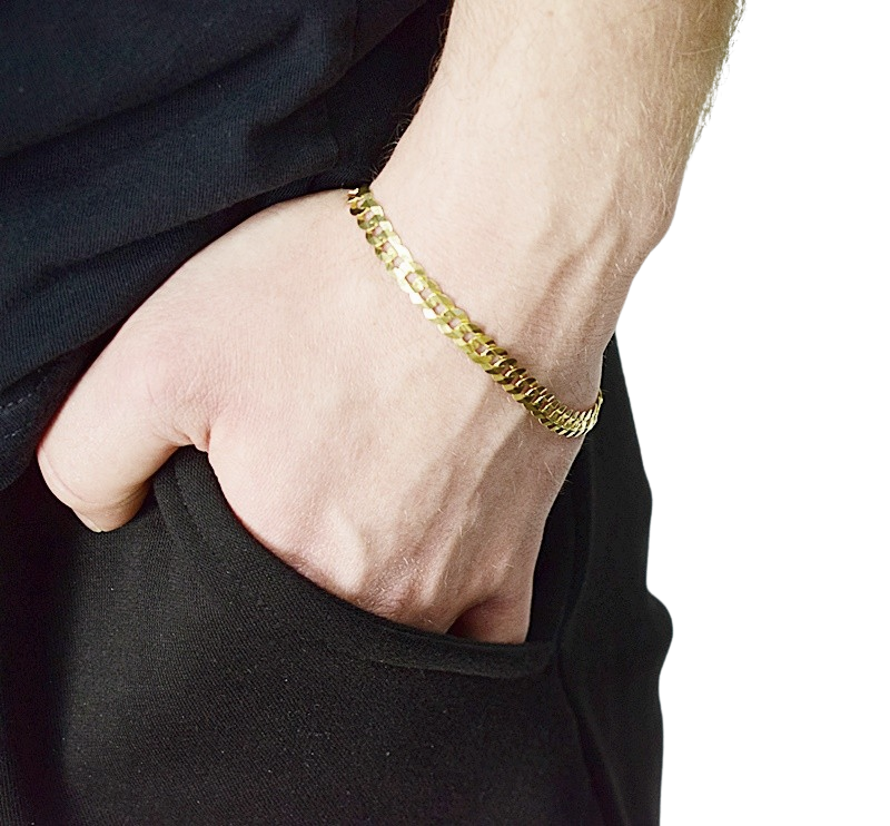 Przedstawiamy państwu stylową i elegancką bransoletkę o splocie Pancerka. Produkt został wykonany z najwyższej jakości złota próby 585. Ten model bransolety z pewnością doceni każdy mężczyzna.