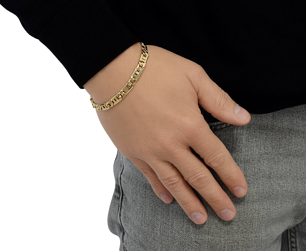 Elegancka i wyrazista bransoletka wykonana z wysokiej jakości złota próby 585 to doskonały wybór dla osób ceniących styl i trwałość. Model wyróżnia się nowoczesnym, geometrycznym splotem, który łączy klasykę z charakterystycznym, męskim designem.