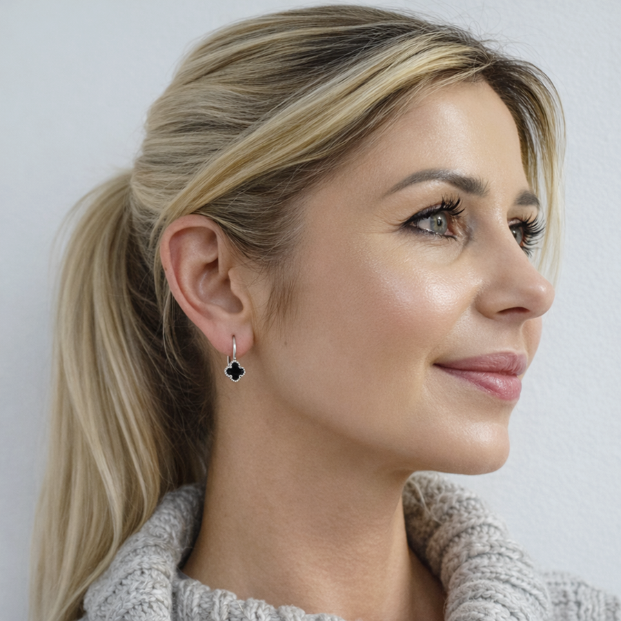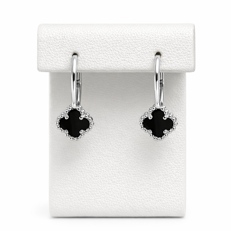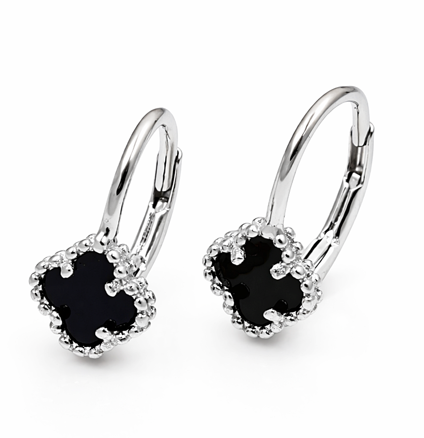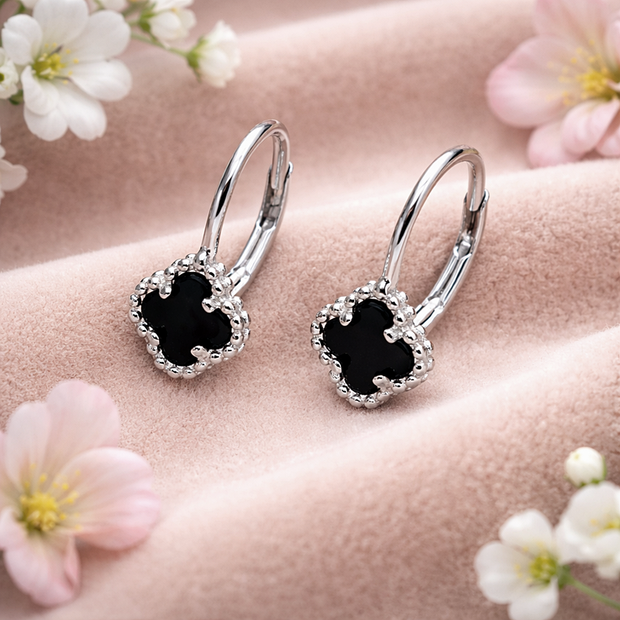 Kolczyki Srebrne Koniczynka Marokańska – Czarny Onyks pr. 925