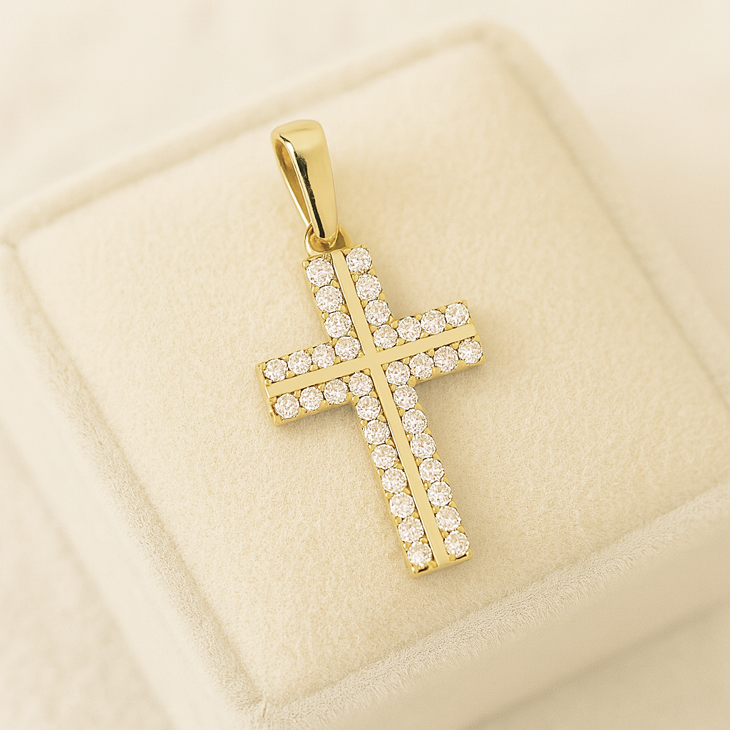 ➡️ Złoty Krzyżyk z Cyrkoniami pr 585