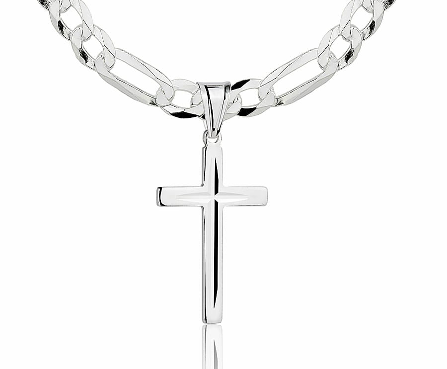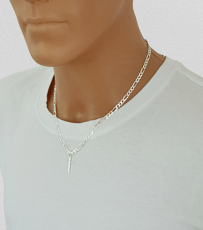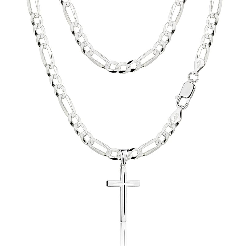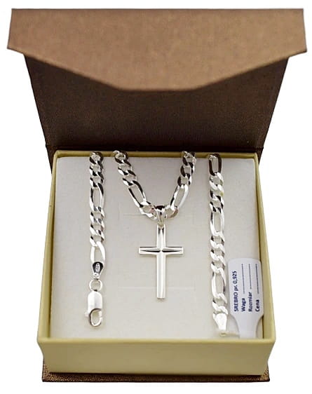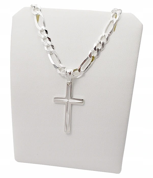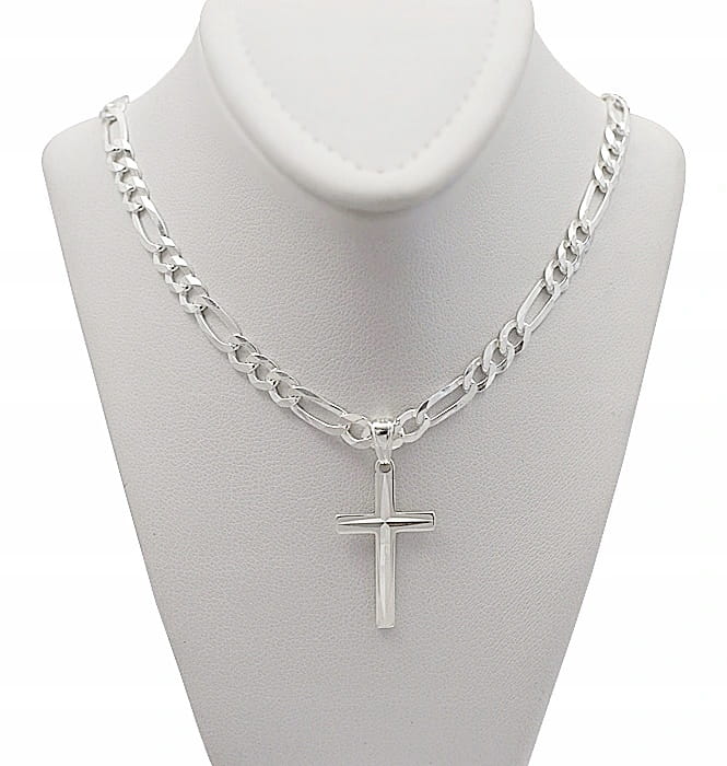 ➡️ Srebrny Łańcuszek Figaro Peny z Krzyżykiem 4,50 mm pr 925