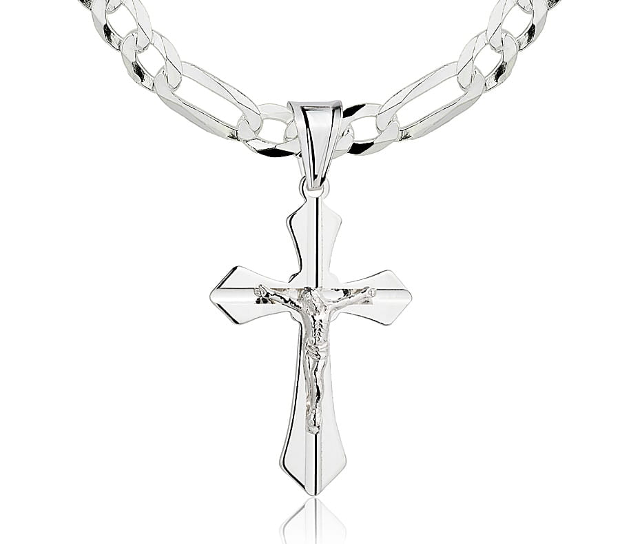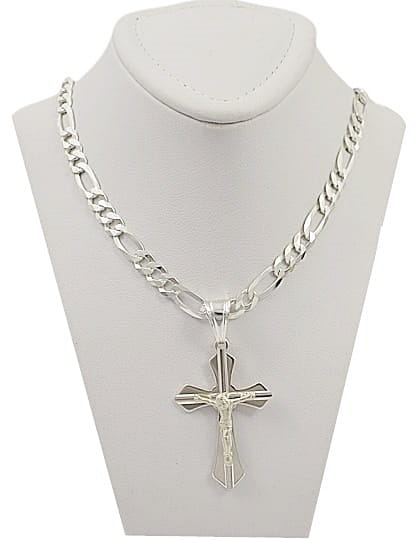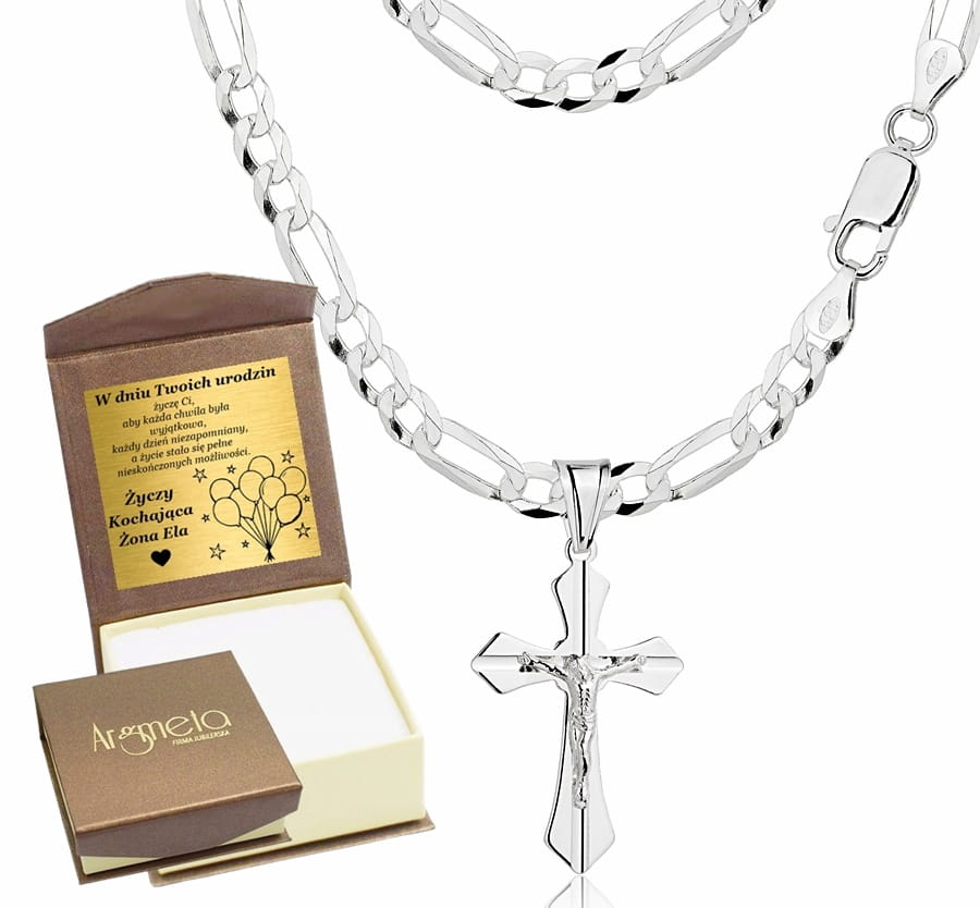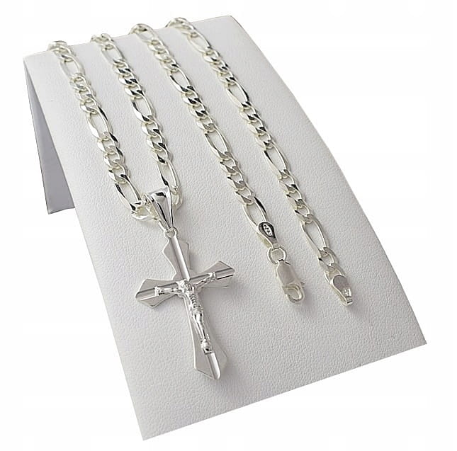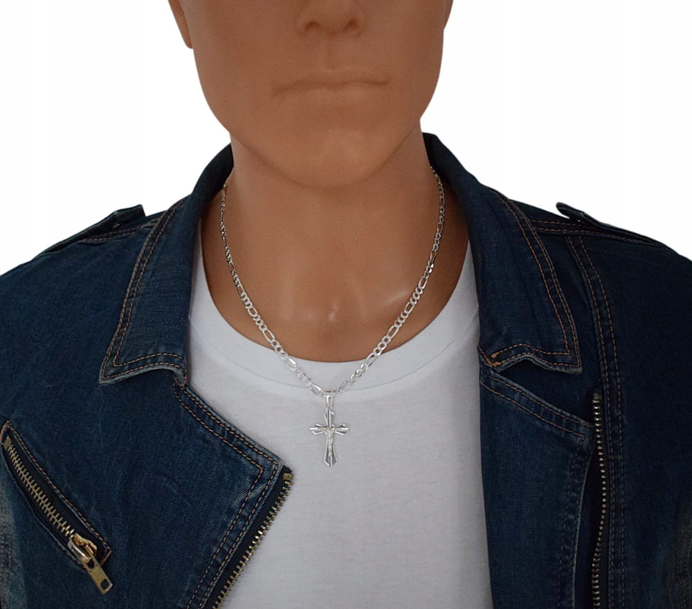 ➡️ Srebrny Łańcuszek Figaro Pełny 4,50 mm z Krzyżykiem pr 925