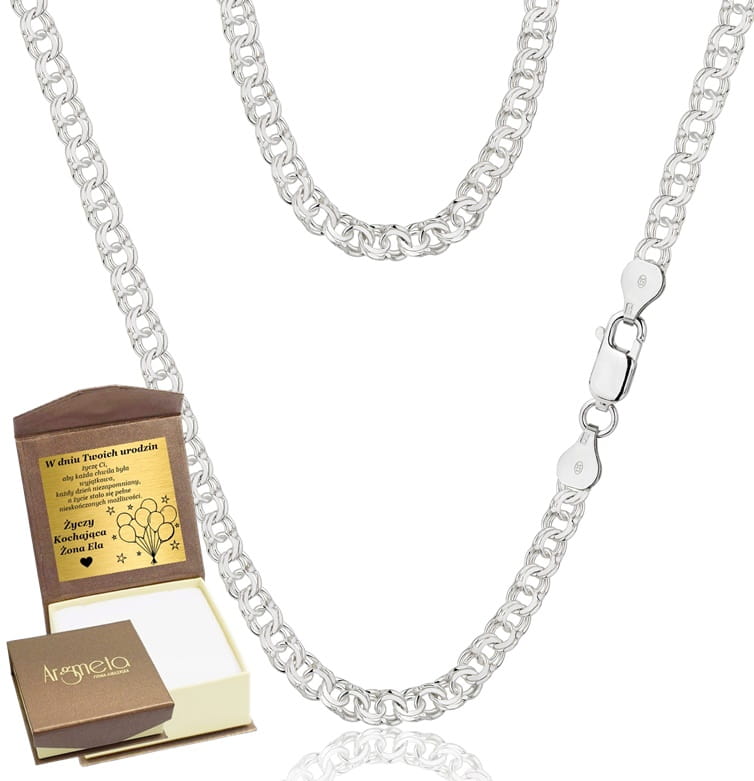 Łańcuszek jest nowy z metką, bezpośrednio od producenta. Zapakowany w gustowne Włoskie Pudełeczko Jubilerskie. Został precyzyjnie wykonany. Posiada bezpieczne zapięcie chroniące przed zerwaniem. Dodatkowo jest diamentowany co nadaje idealny połysk. Wykonany z czystego srebra próby 925. Cechowany przez Państwowy Urząd Probierczy.