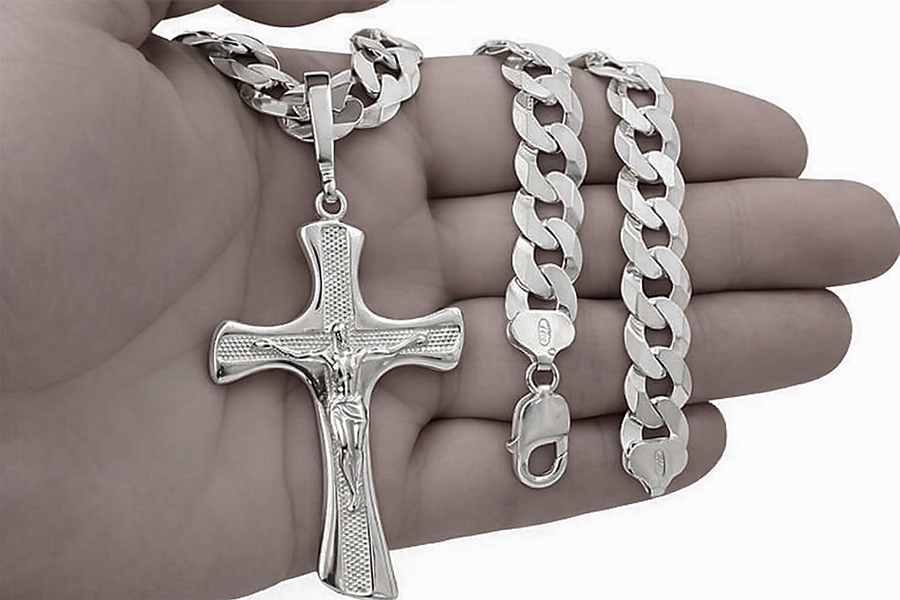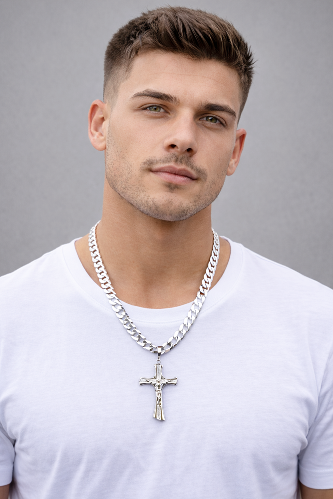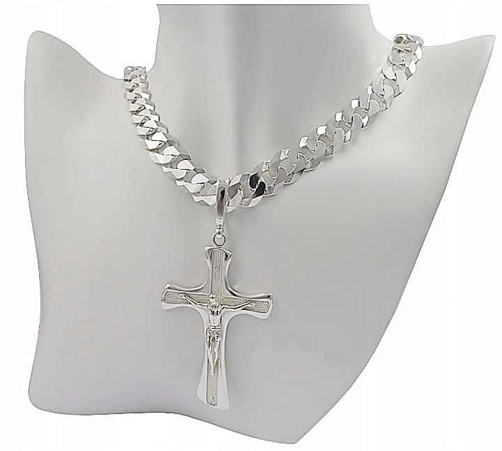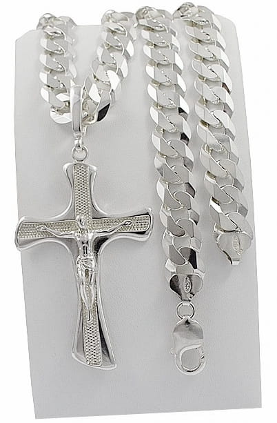 ➡️ Srebrny Łańcuszek Pancerka 12,30 mm z Krzyżem pr 925
