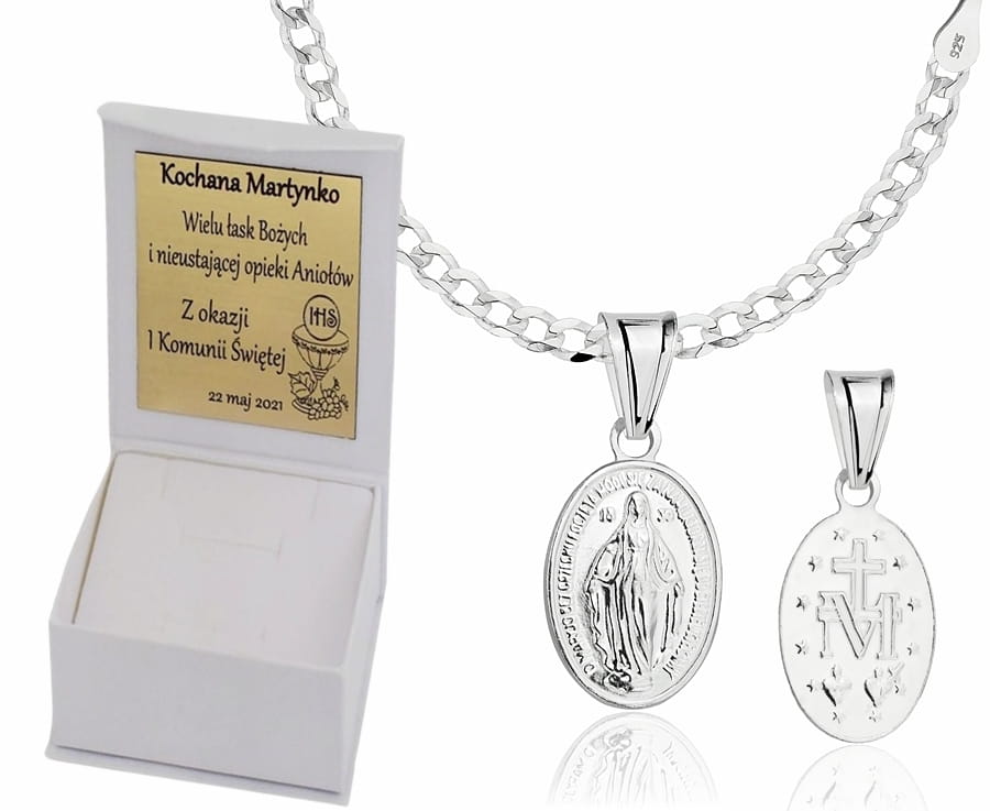 ➡️ Srebrny Łańcuszek Pancerka 2,20 mm z Medalikiem Cudownym pr 925