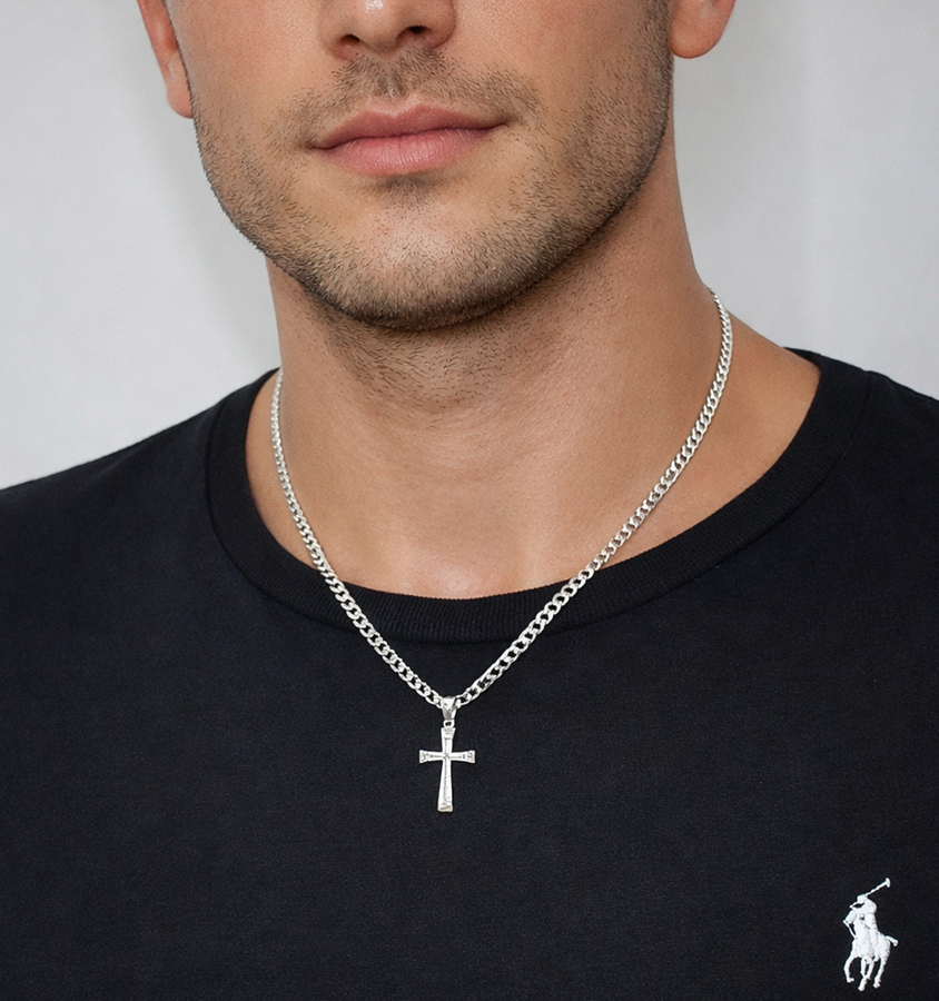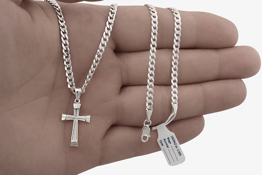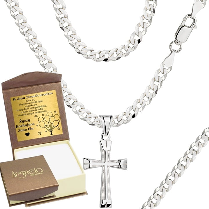 Oferujemy Srebrny Łańcuszek z Krzyżykiem wykonany z najwyższej jakości srebra próby 925. Model posiada diamentowane wykończenie, które nadaje mu intensywny blask i luksusowy wygląd.