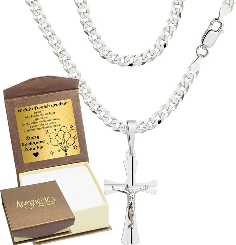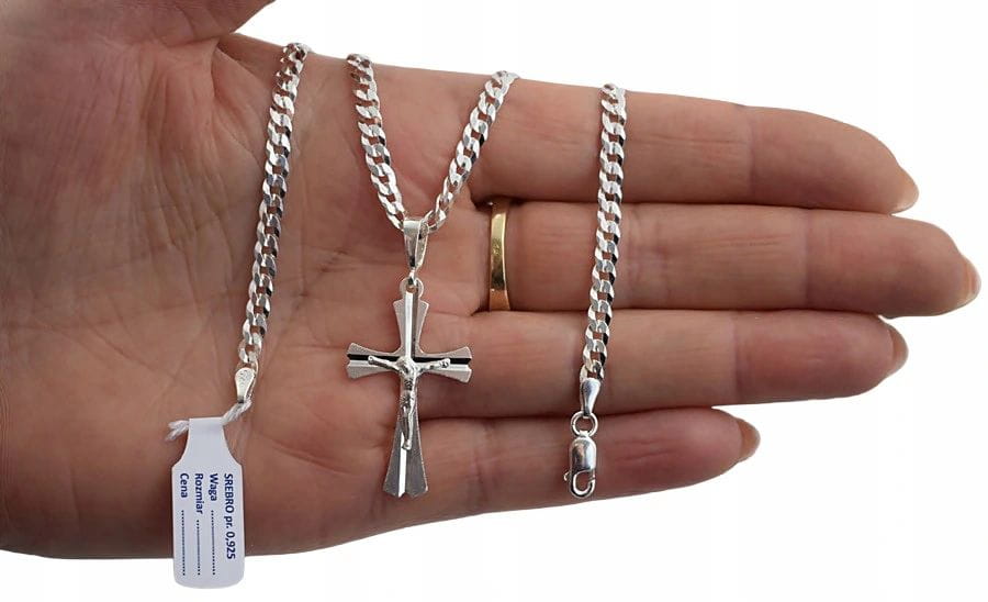 ➡️ Srebrny Łańcuszek Pancerka z Krzyżykiem 3,80 mm pr 925