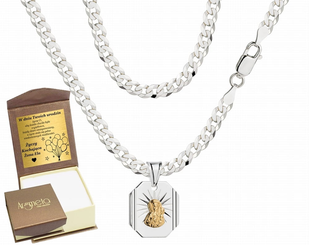 ➡️ Srebrny Łańcuszek Pancerka z Medalikiem Złoconym 3,80 mm pr 925