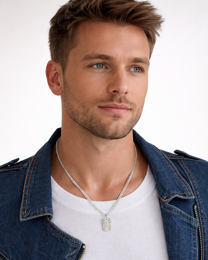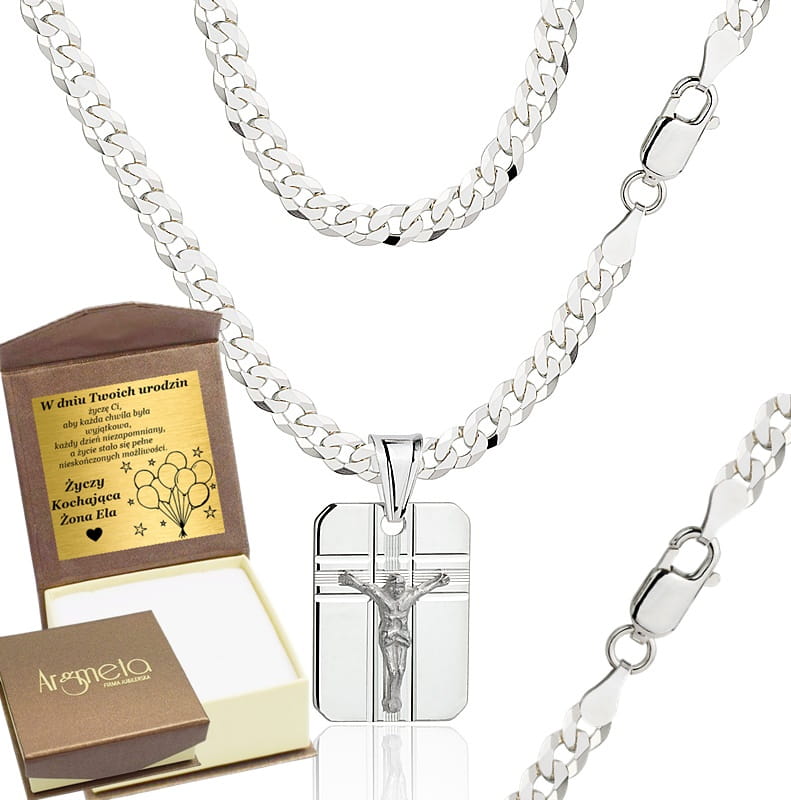 Elegancki i solidny męski łańcuszek wykonany z wysokiej jakości srebra próby 925. Klasyczny splot pancerka w wersji pełnej zapewnia trwałość i komfort noszenia, a diamentowane ogniwa nadają mu wyjątkowy połysk i efektowny wygląd.