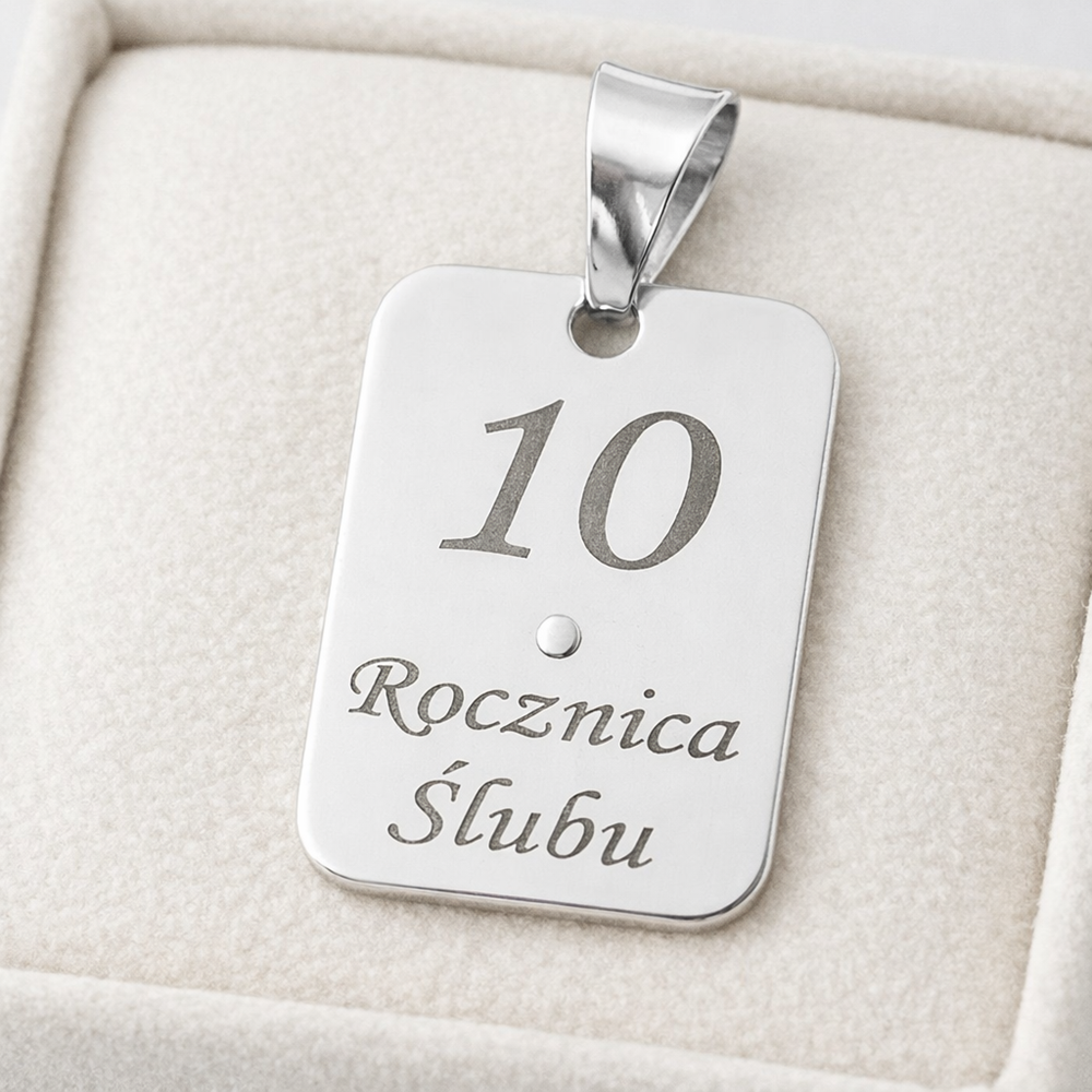 Na tylnej części zawieszki możemy wygrawerować każdy nadesłany przez Państwa tekst np. imię i nazwisko, data, grupa krwi itp. maksymalnie do 25 znaków