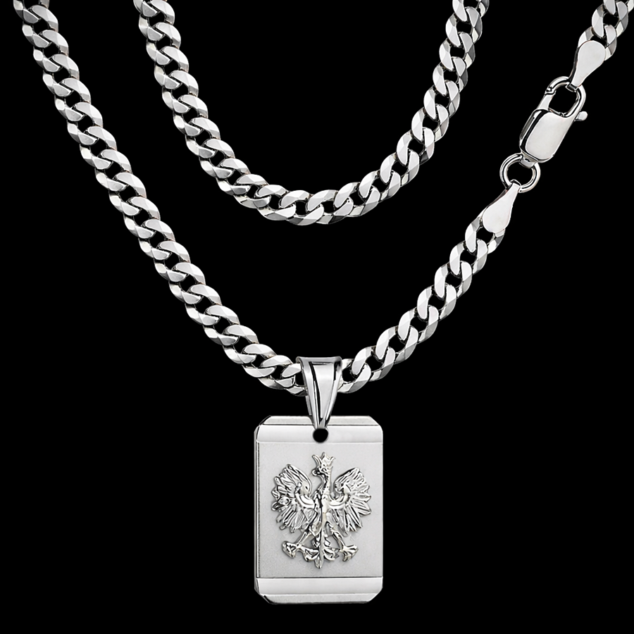 Stylowy i wyrazisty łańcuszek wykonany z wysokiej jakości srebra próby 925. Pełna konstrukcja zapewnia solidność i trwałość, a diamentowane ogniwa pięknie odbijają światło, nadając biżuterii luksusowy połysk. Całość uzupełnia efektowna zawieszka z motywem orła, symbolizująca siłę, wolność i niezależność.