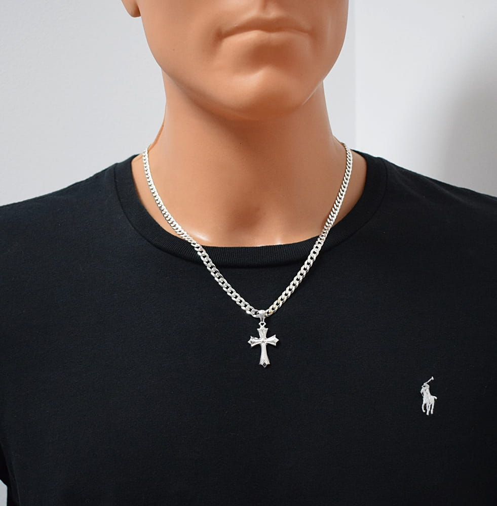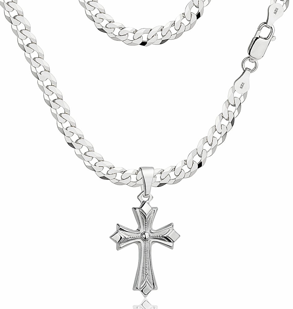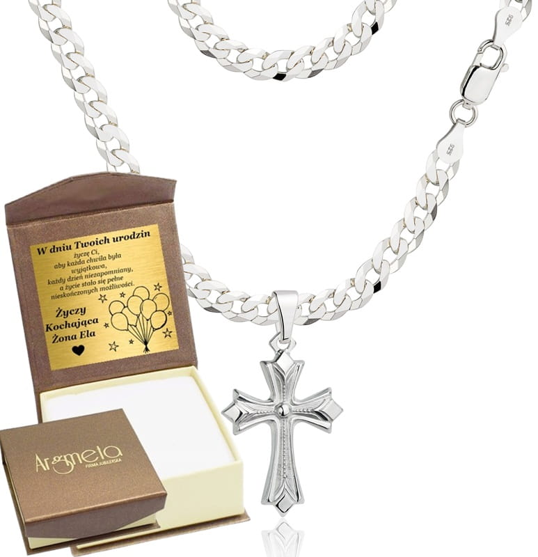 ➡️ Srebrny Łańcuszek Pancerka Pełna 5,00 mm z Krzyżykiem pr 925