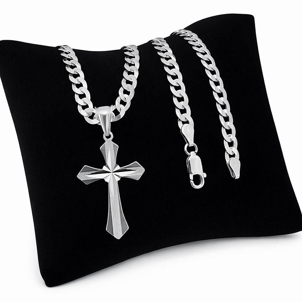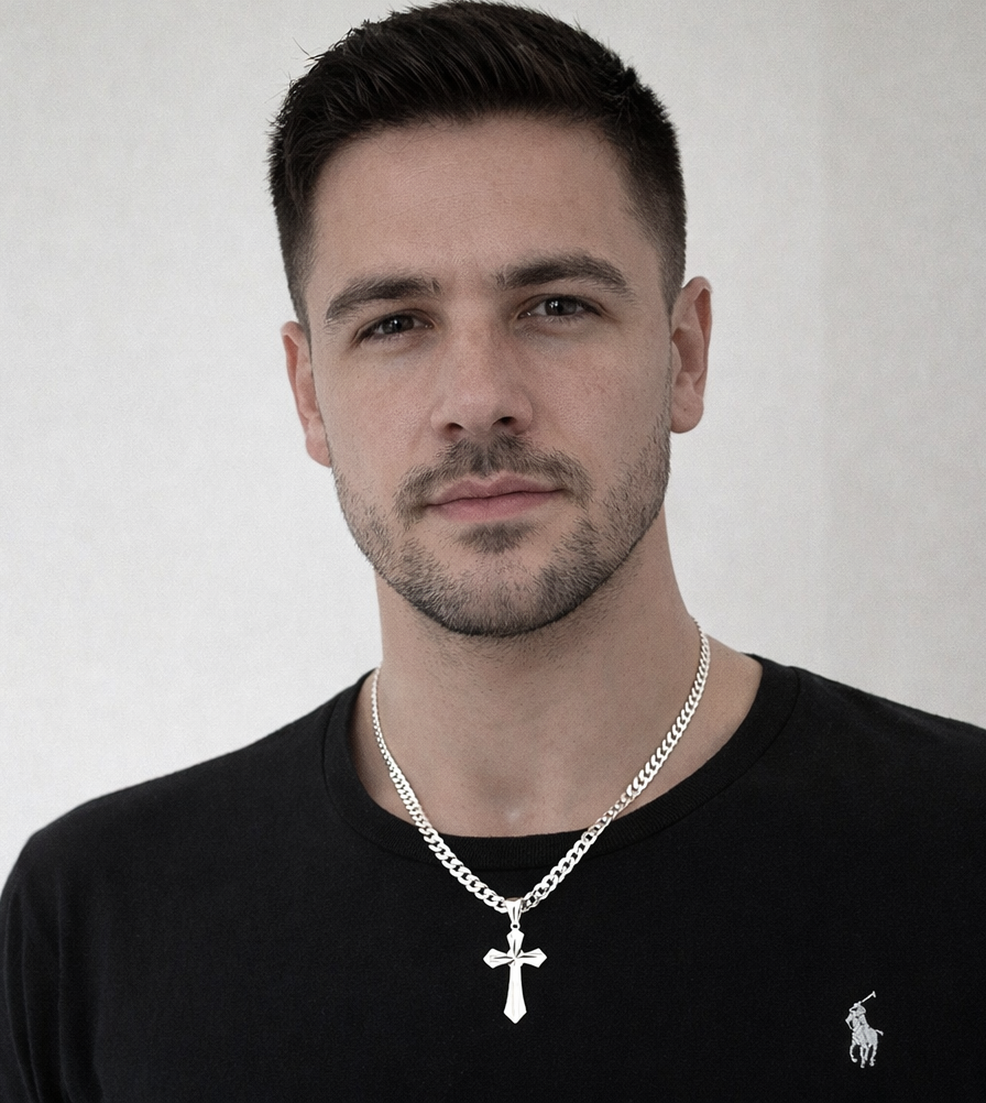 Stylowy i ponadczasowy srebrny łańcuszek męski wykonany z wysokiej jakości srebra próby 925, zakończony eleganckim krzyżykiem. Klasyczny splot typu pancerka zapewnia trwałość, solidność oraz nowoczesny wygląd, który doskonale sprawdzi się zarówno na co dzień, jak i na specjalne okazje.