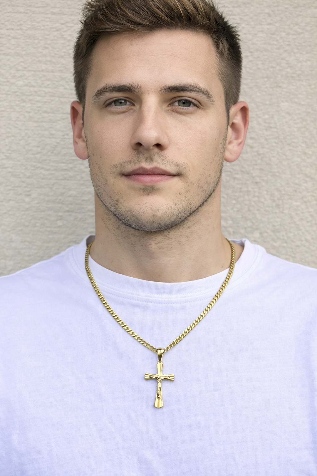 ➡️ Łańcuszek Srebrny Pozłacany Pancerka 3,80 mm Szeroki z Krzyżykiem pr 925