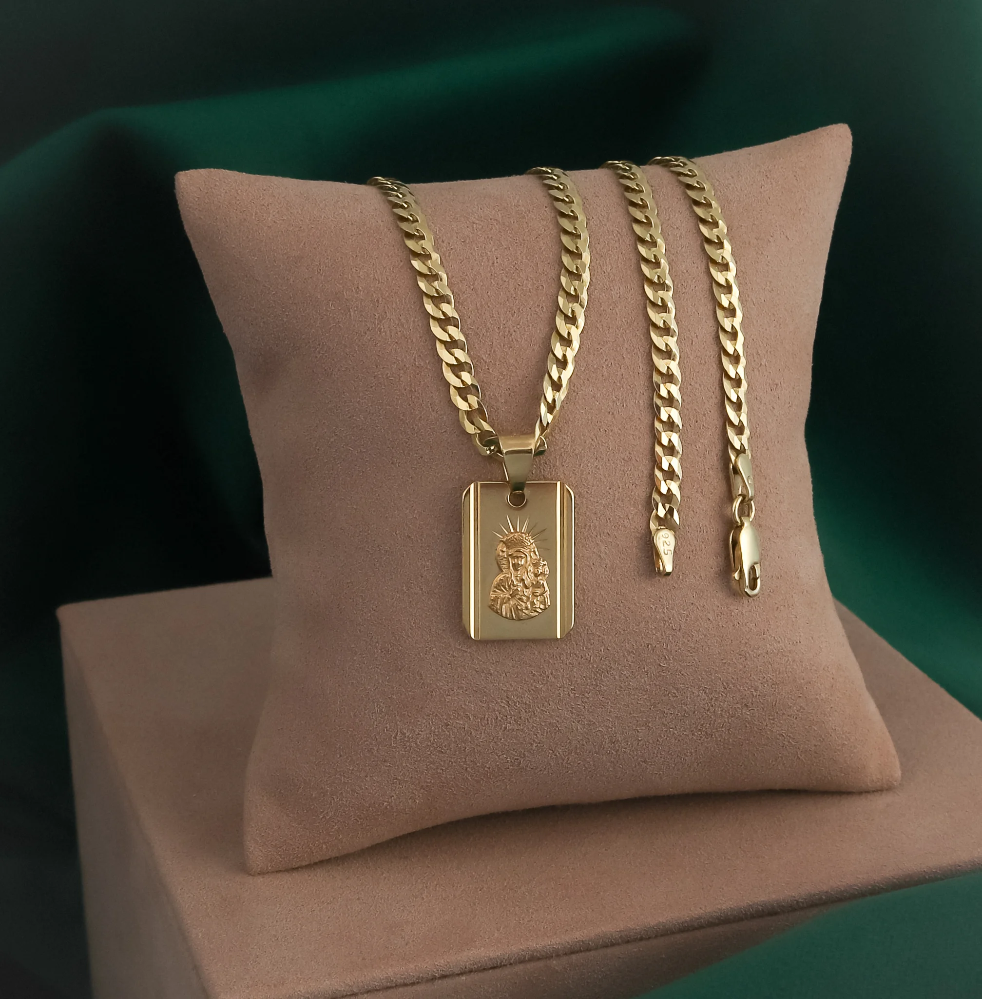 ➡️ Łańcuszek Srebrny Pozłacany Pancerka 3,80 mm z Medalikiem pr 925