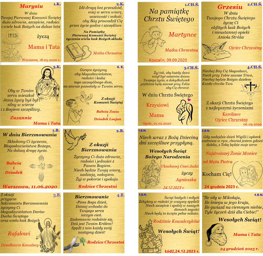 Podaj, który numer projektu wybierasz oraz dane do wpisania w miejsca oznaczone na czerwono. Aby otrzymać spersonalizowaną tabliczkę prosimy o informacje np: