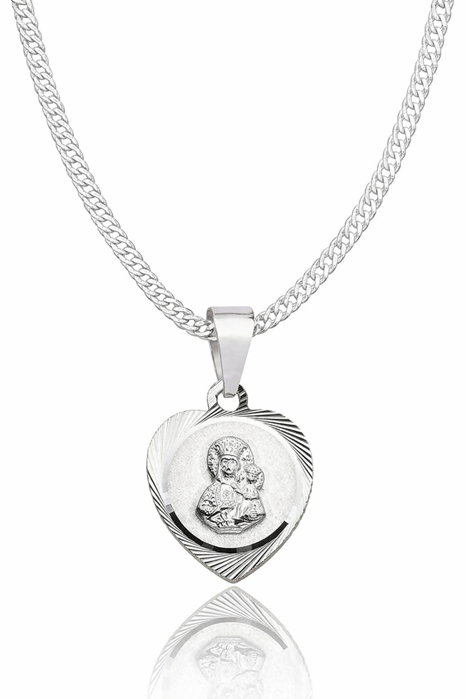 ➡️ Srebrny Łańcuszek Rombo z Medalikiem w Kształcie Serca pr 925