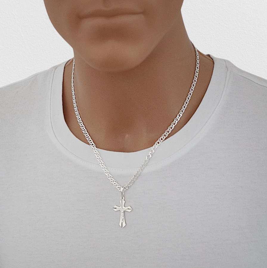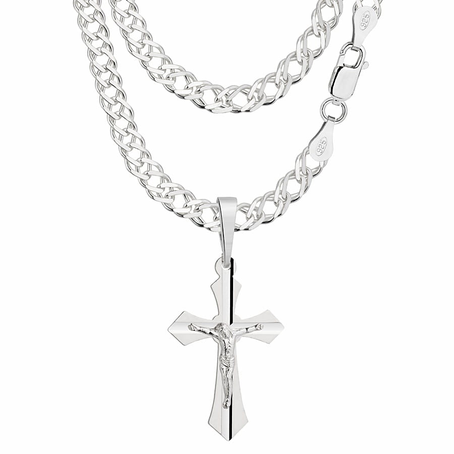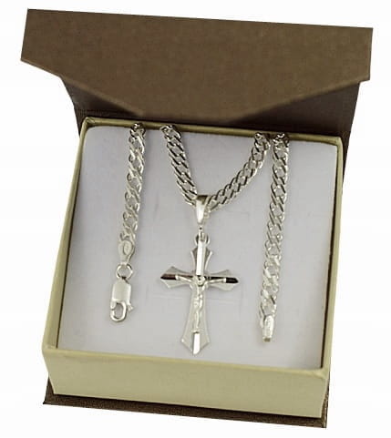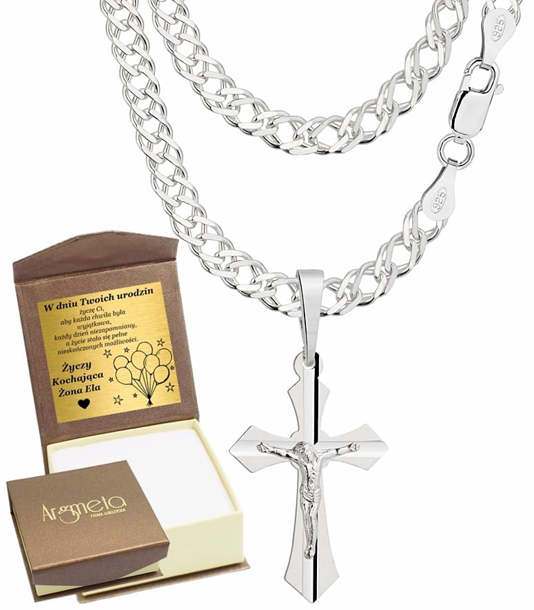 ➡️ Srebrny Łańcuszek Rombo 4,30 mm Pełny z Krzyżykiem ![]()