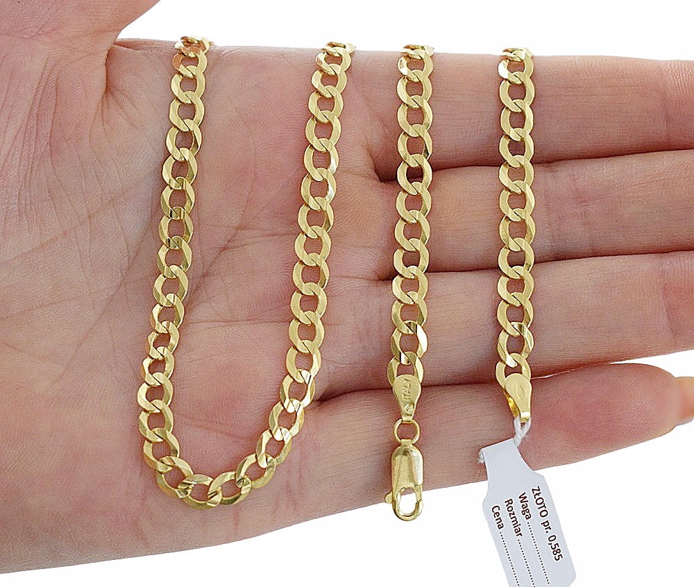 Oferujemy wyjątkowy złoty łańcuszek typu Pancerka wykonany z najwyższej jakości złota próby 585 (14K). Jest to model pełny, co oznacza, że ogniwa nie są puste w środku – dzięki temu łańcuszek jest trwalszy, odporny na odkształcenia i prezentuje się niezwykle solidnie.