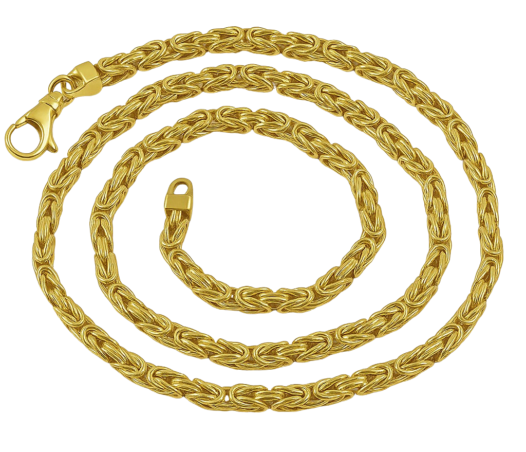 Podkreśl swój wyjątkowy styl z klasycznym łańcuszkiem w splocie królewskim (bizantyjskim) – symbolem luksusu, siły i ponadczasowej elegancji. Ten masywny, męski wzór zachwyca precyzją wykonania i blaskiem prawdziwego złota.