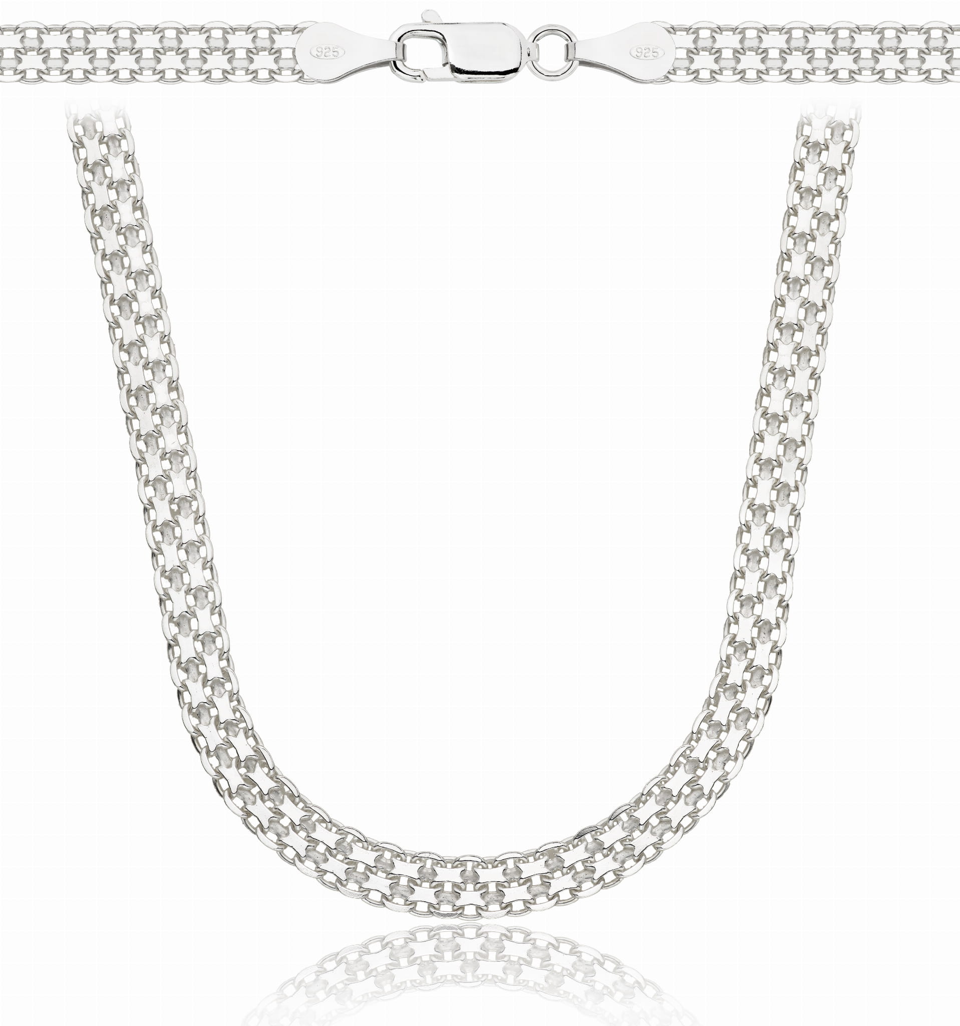 Elegancki i solidny naszyjnik wykonany z wysokiej jakości srebra próby 925. Klasyczny splot typu Bismark o szerokości 4,60 mm nadaje mu wyjątkowej trwałości oraz ponadczasowego charakteru. To doskonały wybór zarówno dla kobiet, jak i mężczyzn ceniących wyrazistą, a jednocześnie uniwersalną biżuterię.