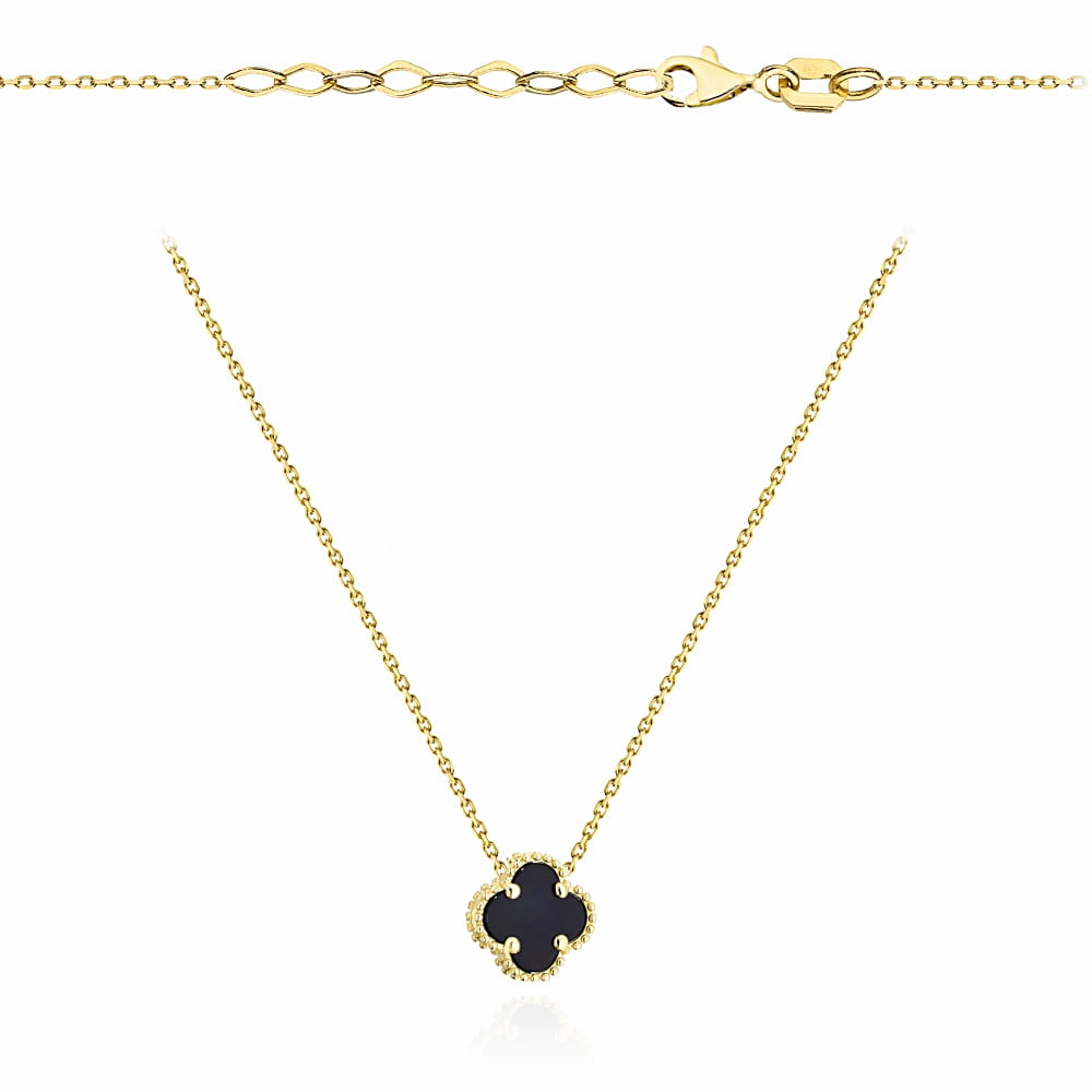 ➡️ Naszyjnik Złoty z Czarną Koniczynką pr 585 / 14 karat