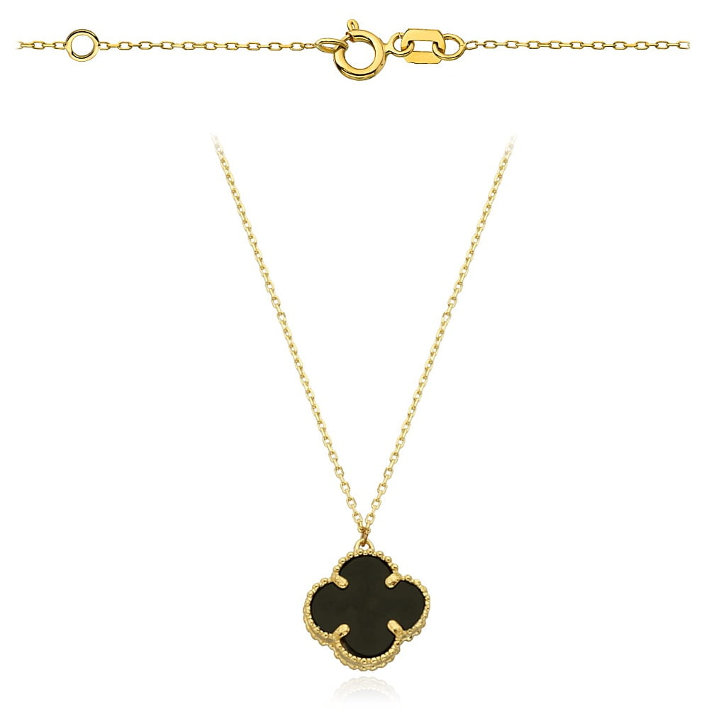 Naszyjnik Złoty z Czarną Koniczynką pr 585