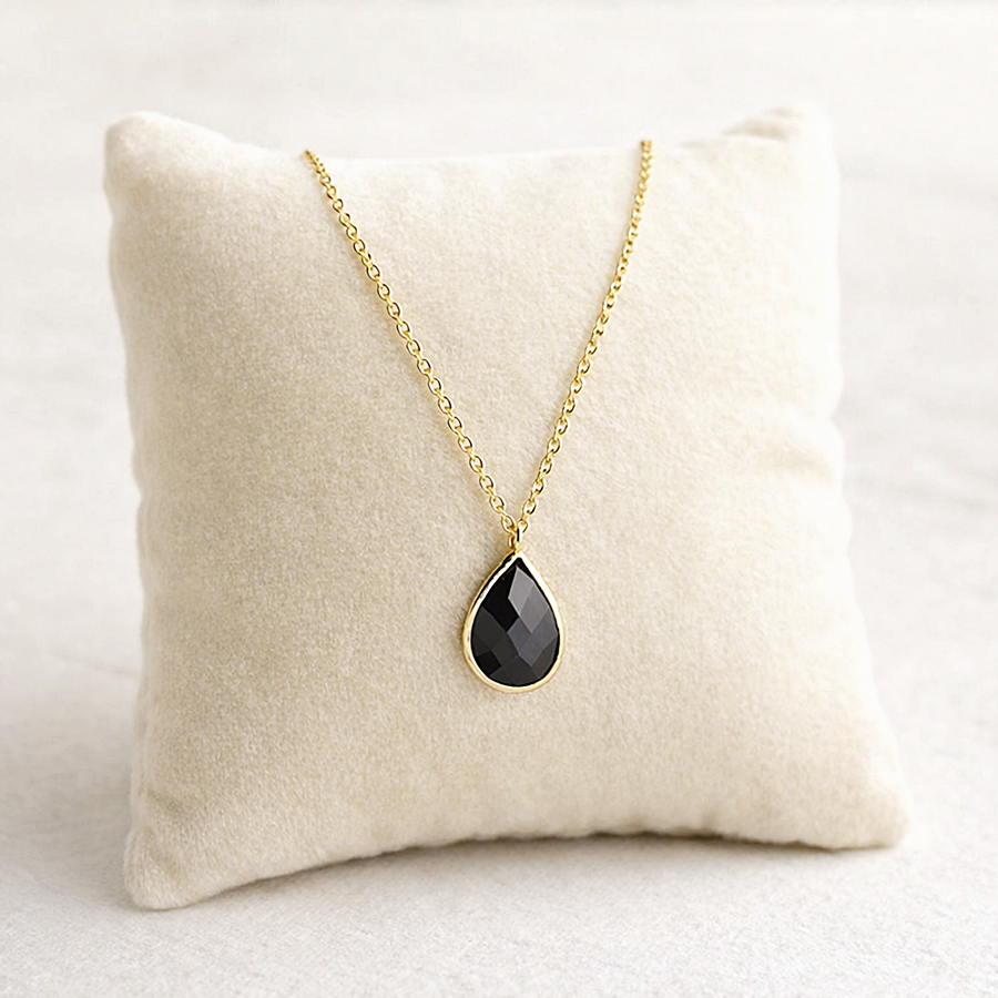 ➡️ Naszyjnik złoty z czarną łezką w złotej oprawie pr 585 / 14 karat