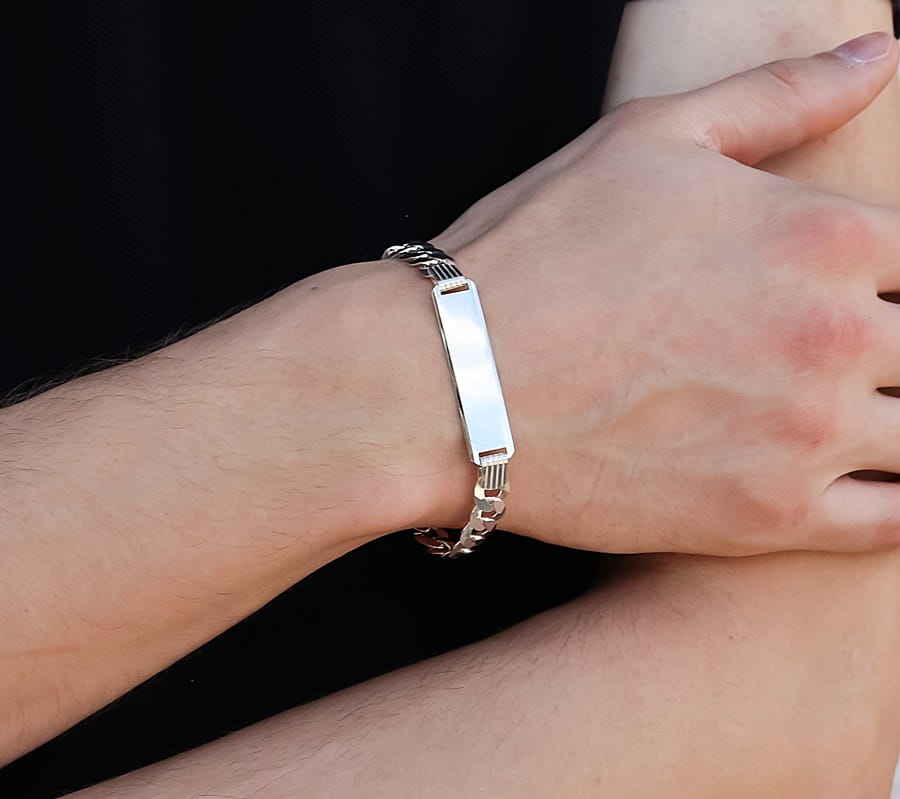 Bransoletka została wyposażona w gładką blaszkę, która idealnie nadaje się do wykonania graweru – np. imienia, daty lub krótkiej dedykacji. Dzięki temu biżuteria może stać się niepowtarzalnym i spersonalizowanym prezentem.