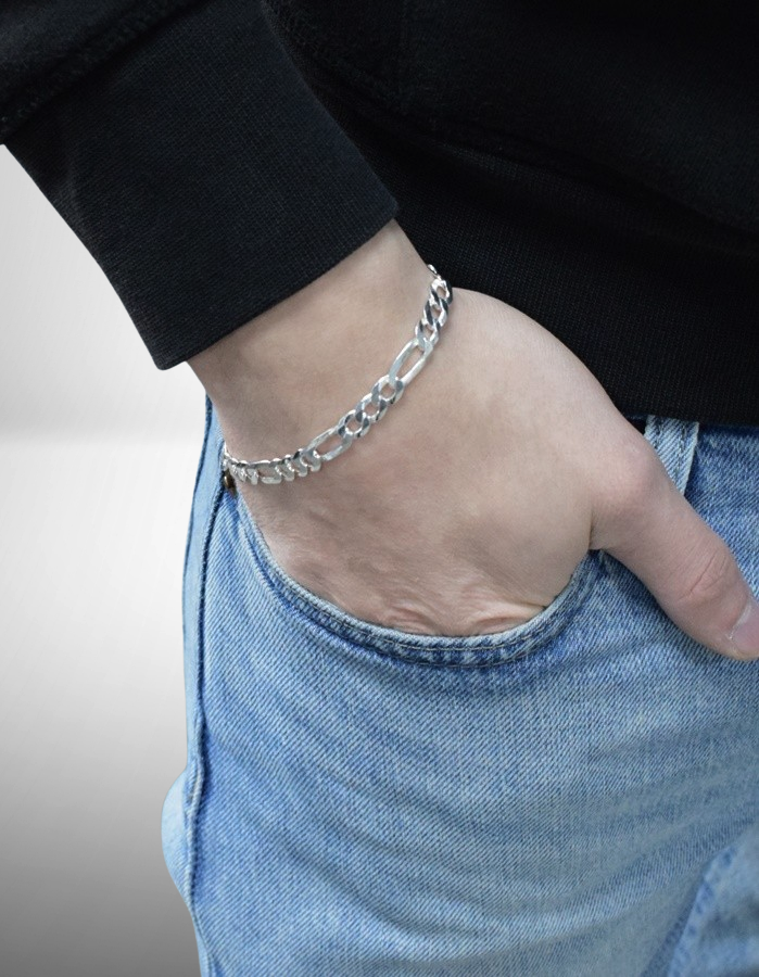 Podkreśl swój wyjątkowy styl dzięki ponadczasowej bransoletce męskiej Figaro wykonanej z najwyższej jakości srebra próby 925. To jeden z najbardziej cenionych i rozpoznawalnych wzorów — elegancki, trwały i idealny na każdą okazję.