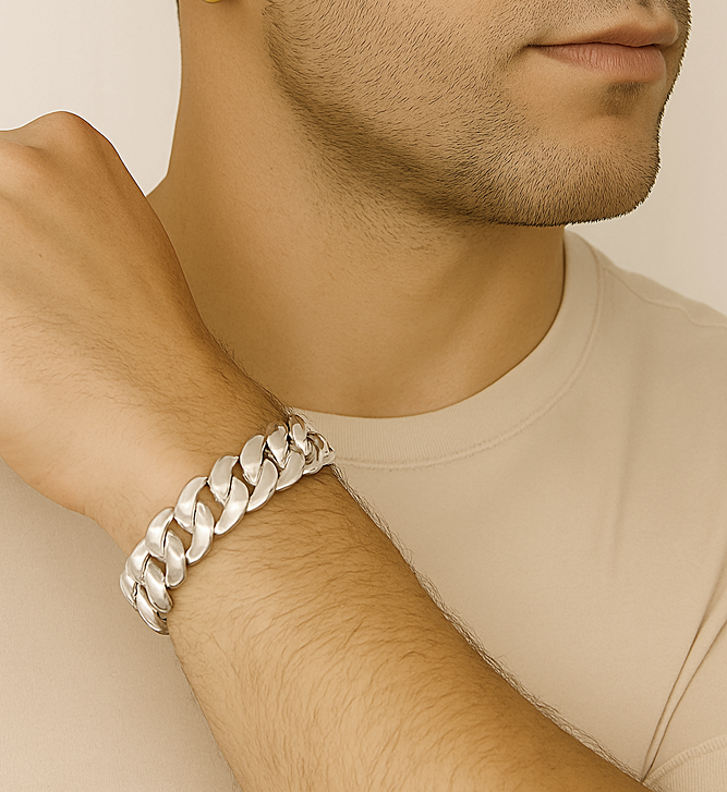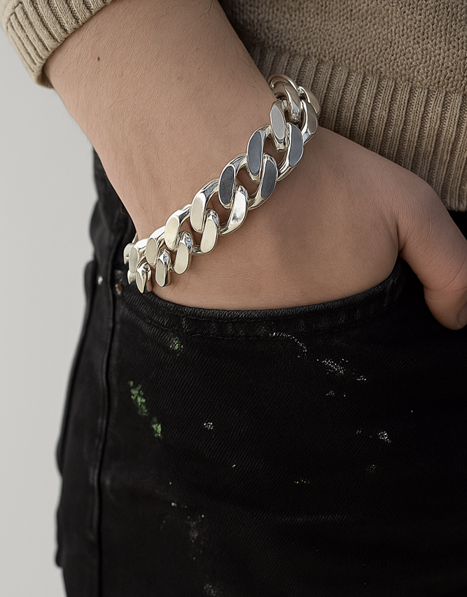 Przedstawiamy państwu stylową i szeroką bransoletkę o splocie Pancerka. Produkt został wykonany z najwyższej jakości srebra próby 925. Ten model bransolety z pewnością doceni każdy mężczyzna.