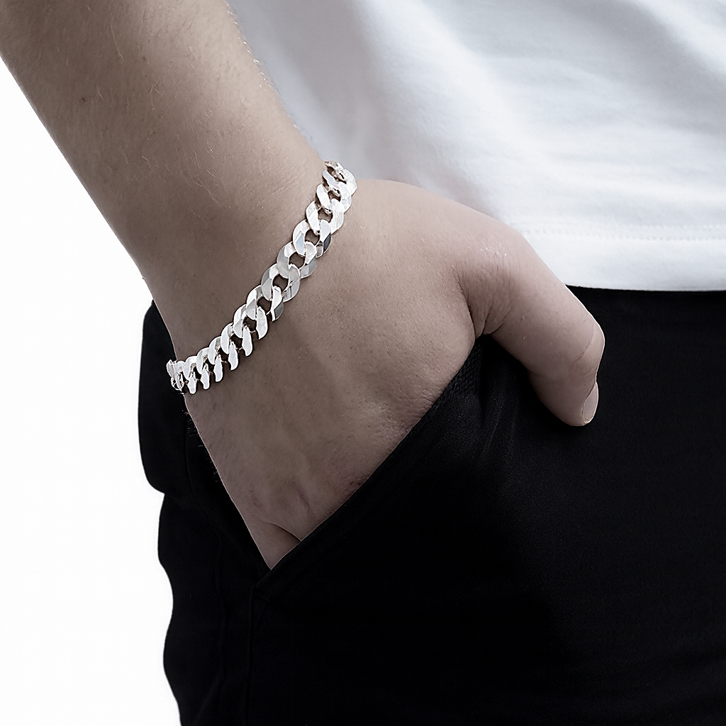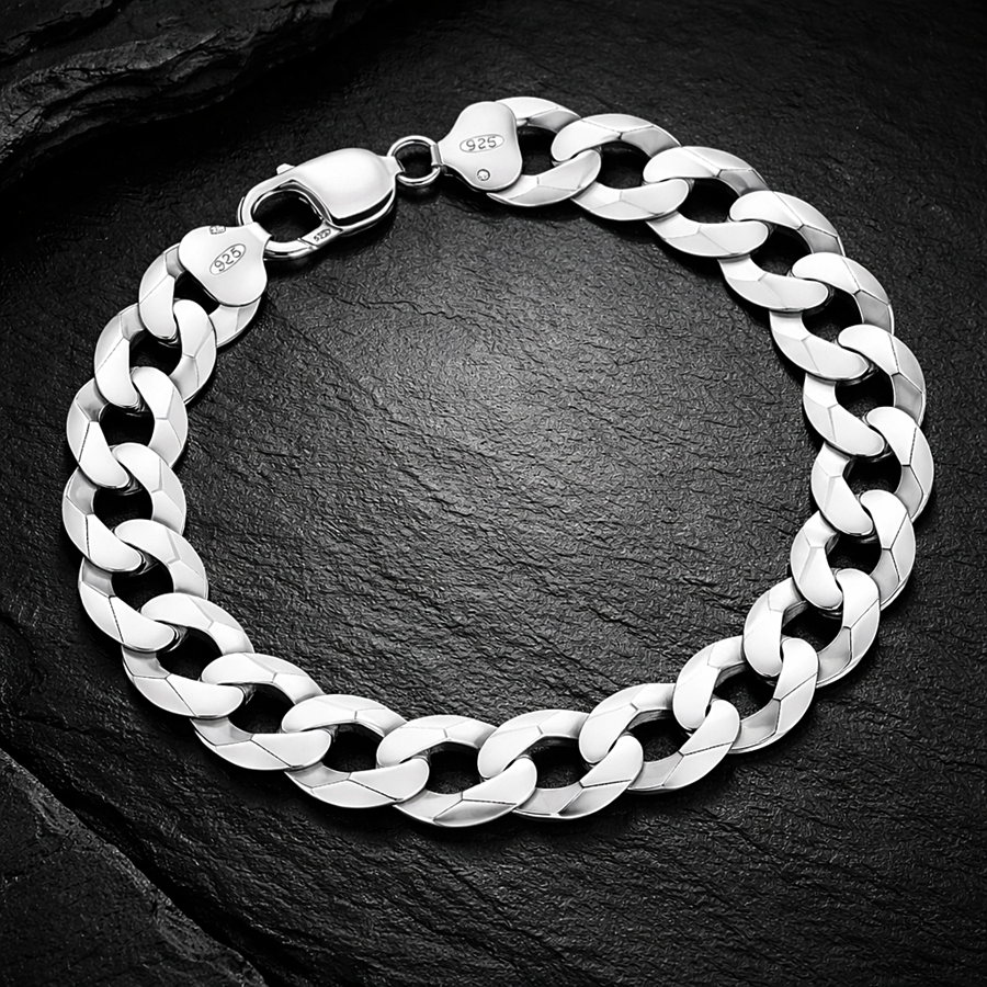 Elegancka i wyrazista bransoletka wykonana z najwyższej jakości srebra próby 925 to idealny wybór dla osób ceniących styl, trwałość i ponadczasowy design. Pełna konstrukcja zapewnia solidność oraz komfort noszenia, a diamentowane wykończenie nadaje jej wyjątkowego blasku, który pięknie odbija światło i przyciąga spojrzenia.