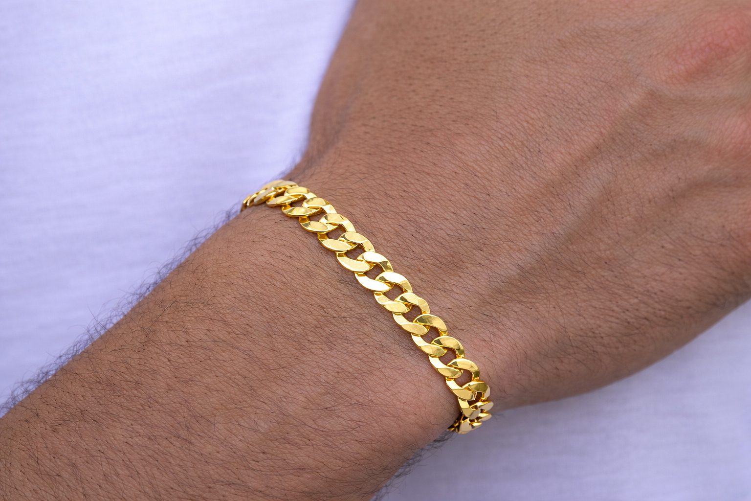 Każde ogniwo zostało precyzyjnie wyprofilowane oraz wypolerowane na wysoki połysk, dzięki czemu bransoletka pięknie odbija światło i przyciąga spojrzenia. Staranność wykonania zapewnia trwałość oraz komfort noszenia na co dzień.
