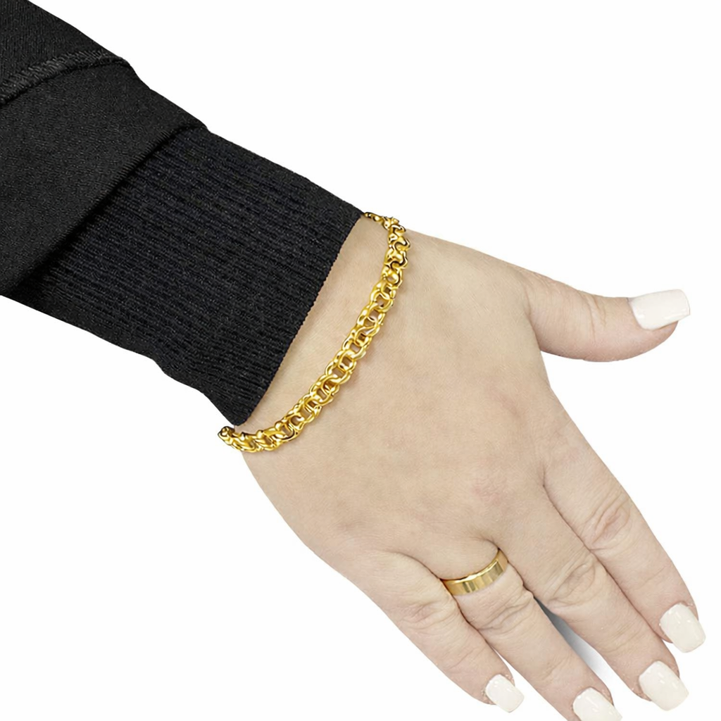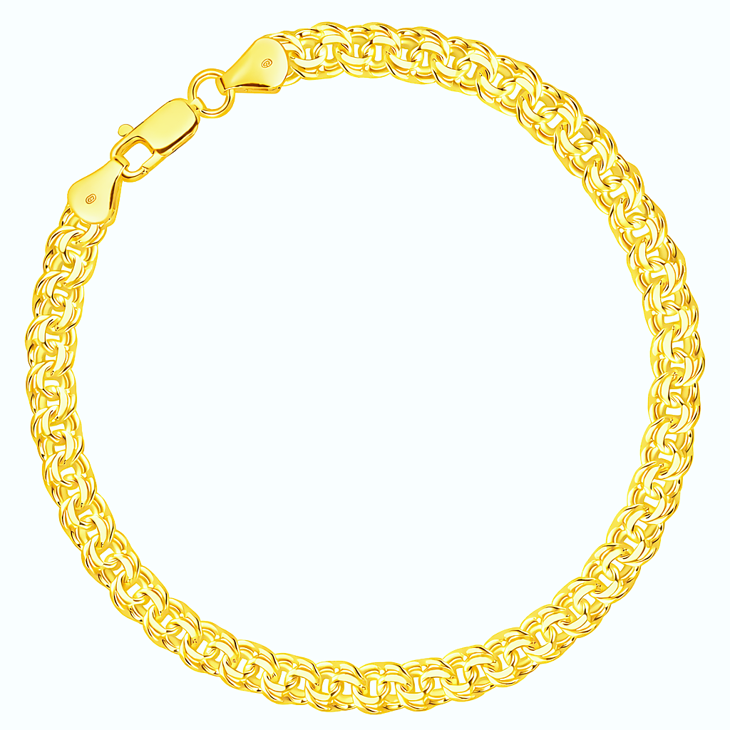 Elegancka damska bransoletka o splocie Galibardii wykonana ze srebra próby 925 i pokryta warstwą złota, która nadaje biżuterii piękny, szlachetny blask.