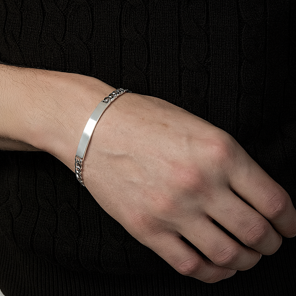 ➡️ Srebrna Bransoletka Pancerka 7,00 mm z Blaszką pr 925 pod Grawer