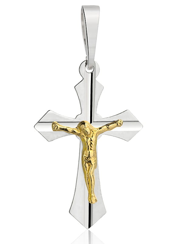 ➡️ Krzyżyk Srebrny Diamentowany z Pasyjką Złoconą pr 925