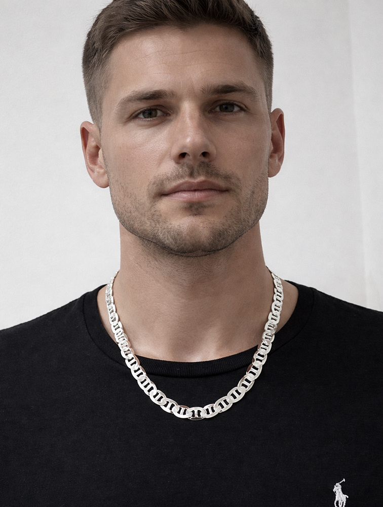 Wyjątkowy łańcuszek męski typu GUCCI (Curb / Marina) wykonany z najwyższej jakości srebra próby 925.