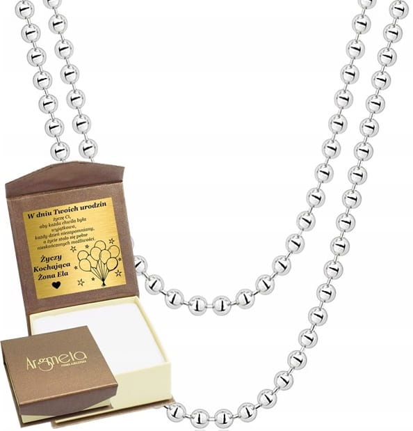 Elegancki łańcuszek wykonany z wysokiej jakości srebra próby 925. Składa się z równomiernie połączonych, polerowanych kuleczek, które pięknie odbijają światło i nadają całości subtelnego blasku. Klasyczny splot kulkowy sprawia, że łańcuszek jest nie tylko stylowy, ale również bardzo praktyczny.