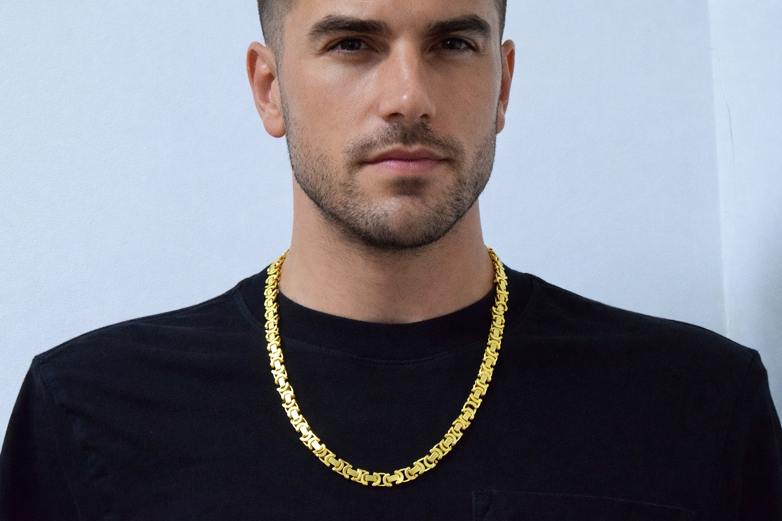 Efektowny łańcuch o splocie królewskim płaskim (etruski) o szerokości 8,5 mm to biżuteria dla osób ceniących wyrazisty i luksusowy styl. Charakterystyczne, precyzyjnie połączone ogniwa tworzą solidną i gęstą strukturę, która pięknie odbija światło i przyciąga uwagę. Dzięki płaskiej formie łańcuch doskonale układa się na szyi, podkreślając elegancję i pewność siebie.