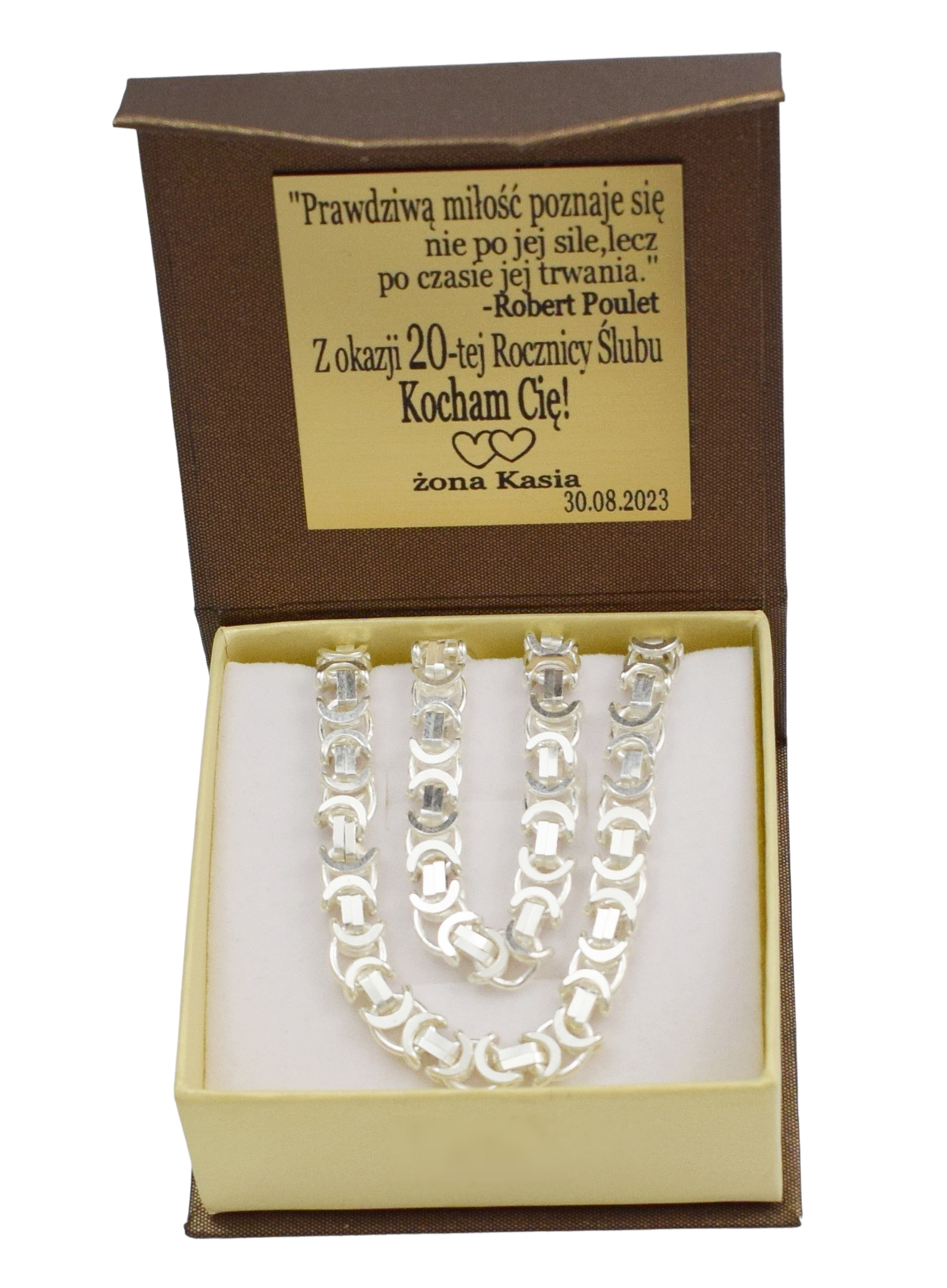 Aby prezent nie odszedł w zapomnienie, na życzenie wykonamy dedykację na tabliczce umieszczonej wewnątrz eleganckiego pudełeczka.