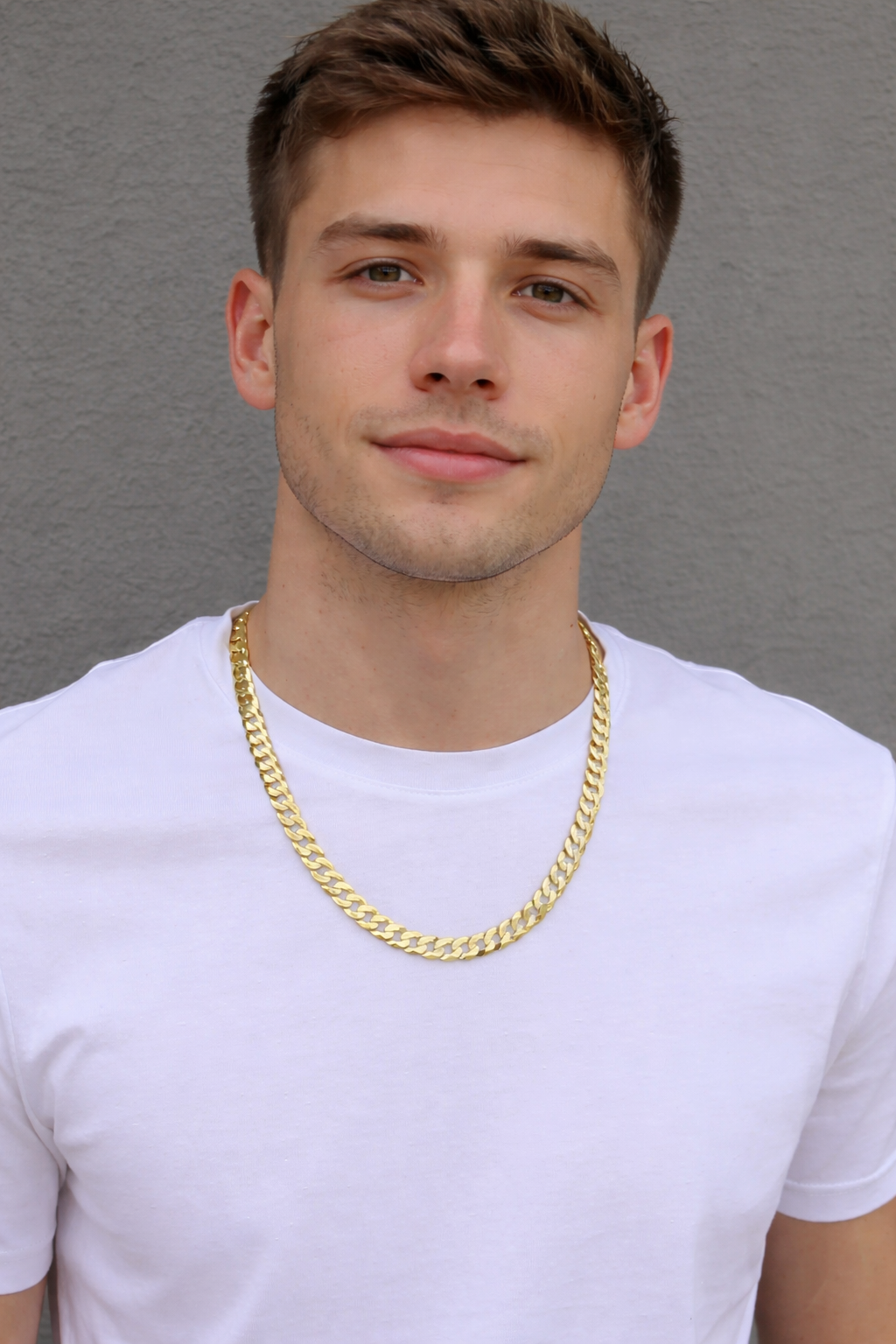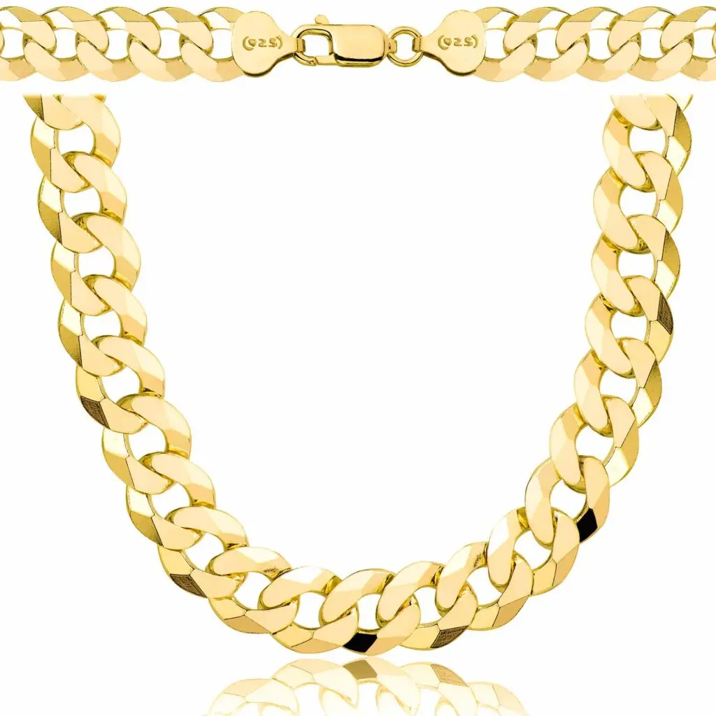 Stylowy łańcuszek typu pancerka o szerokości 9,30 mm, wykonany ze srebra próby 925 i pokryty warstwą złota. Charakteryzuje się solidnym, gęstym splotem oraz eleganckim połyskiem, który przyciąga uwagę i podkreśla charakter stylizacji. Idealny zarówno na co dzień, jak i na specjalne okazje.