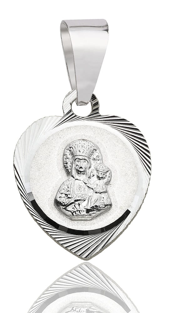 ➡️ Medalik Srebrny z Wizerunkiem Matki Boskiej Częstochowskiej w Sercu pr 925
