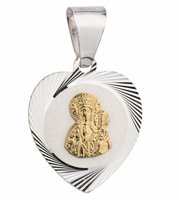 ➡️ Medalik Srebrny z Pozłacaną Matką Boską Częstochowską w Sercu pr 925