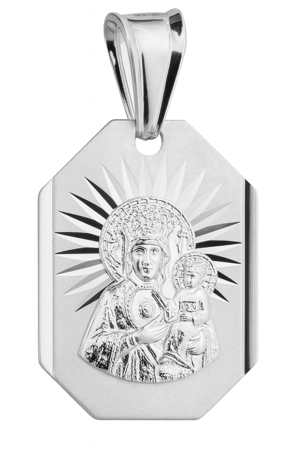 ➡️ Medalik Srebrny Diamentowany z Wizerunkiem Matki Boskiej Częstochowskiej pr 925